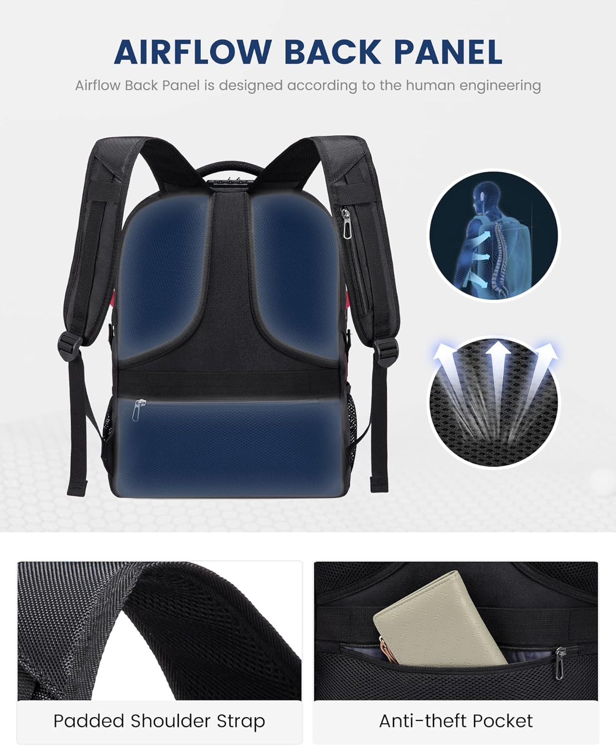 - 【ANTI-THEFT DESIGN & TSA FRIENDLY】 With Fixed Password Lock and Durable Metal Zippers, our 17 inch laptop bag is safe guaranteed for protecting your valuable items inside. No need to worry theft easily opening your backpack when you are travelling or lining up.With the instruction card,you don’t need to worry about forgetting your code. And lay-flat design is for easily organized and get your items via opening up to 180 degree when through the airport security.
