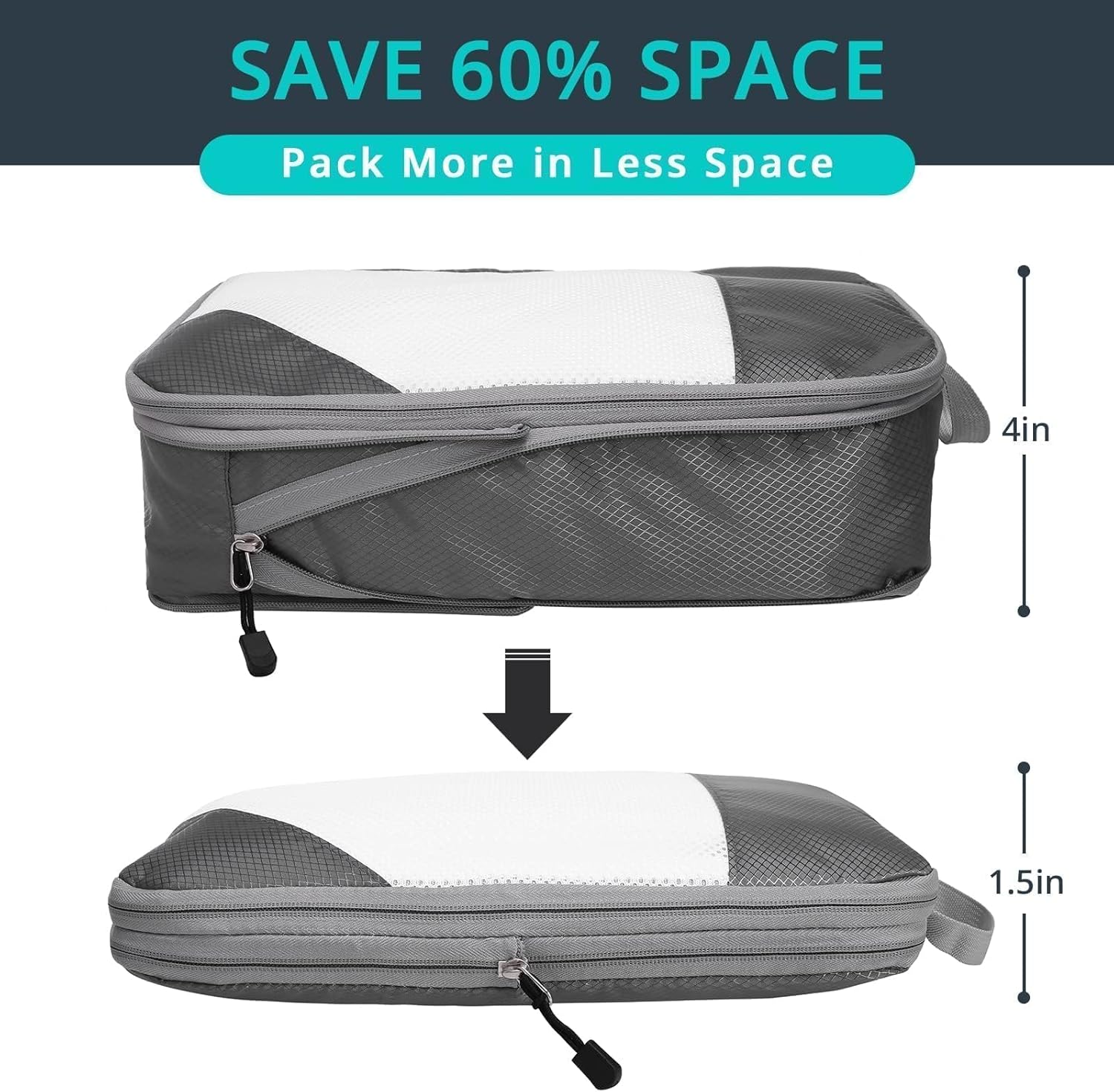 3 Set Compression Packing Cubes for Travel - Compressible, Lightweight, and Space-Saving Packing Cubes, Travel Essentials for Women, Grey