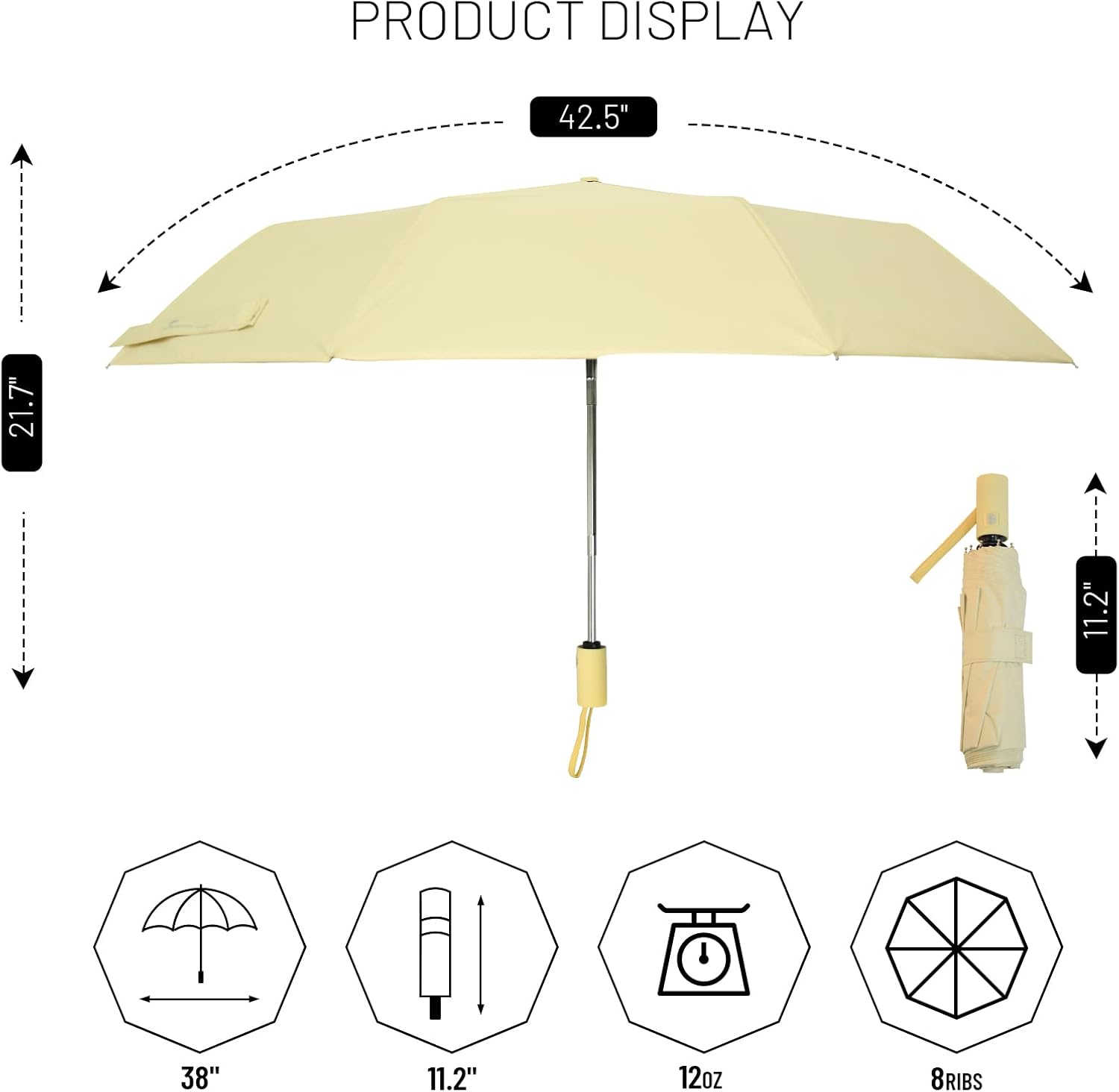 - Stable Structure and Large Canopy Size: The eight-bone design of the folding umbrella increases the opening diameter while ensuring the compact size . This eight-bone umbrella compared to other six-bone umbrella having better stability, strong wind resistance and strong resistance to folding ability.