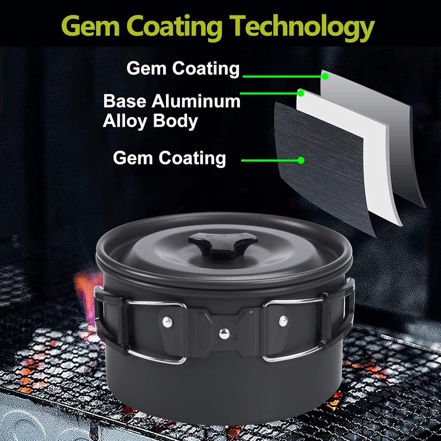 aiGear Camping Cookware Mess Kit, Non-Stick Camping Pan Pot Kettle, Lightweight Aluminum Camping Utensils, Collapsible Portable Camping Cooking Set for Outdoor Cooking Hiking Picnic