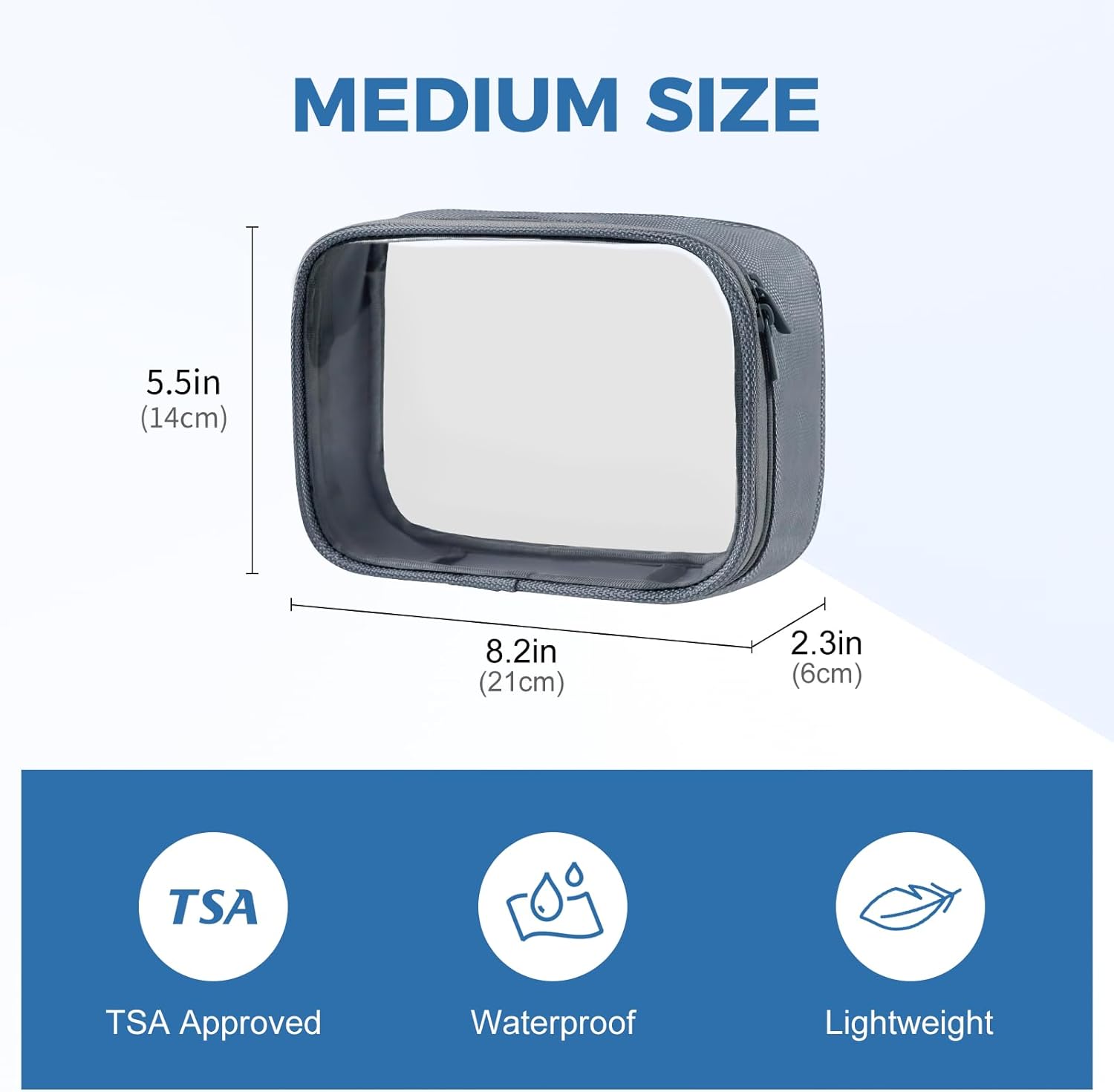 Moyad TSA Approved Clear Toiletry Bag, 3 Pack Quart Size 3-1-1 Liquids Pouch for Travel, Transparent Makeup & Cosmetic Organizer for Women Men, Grey