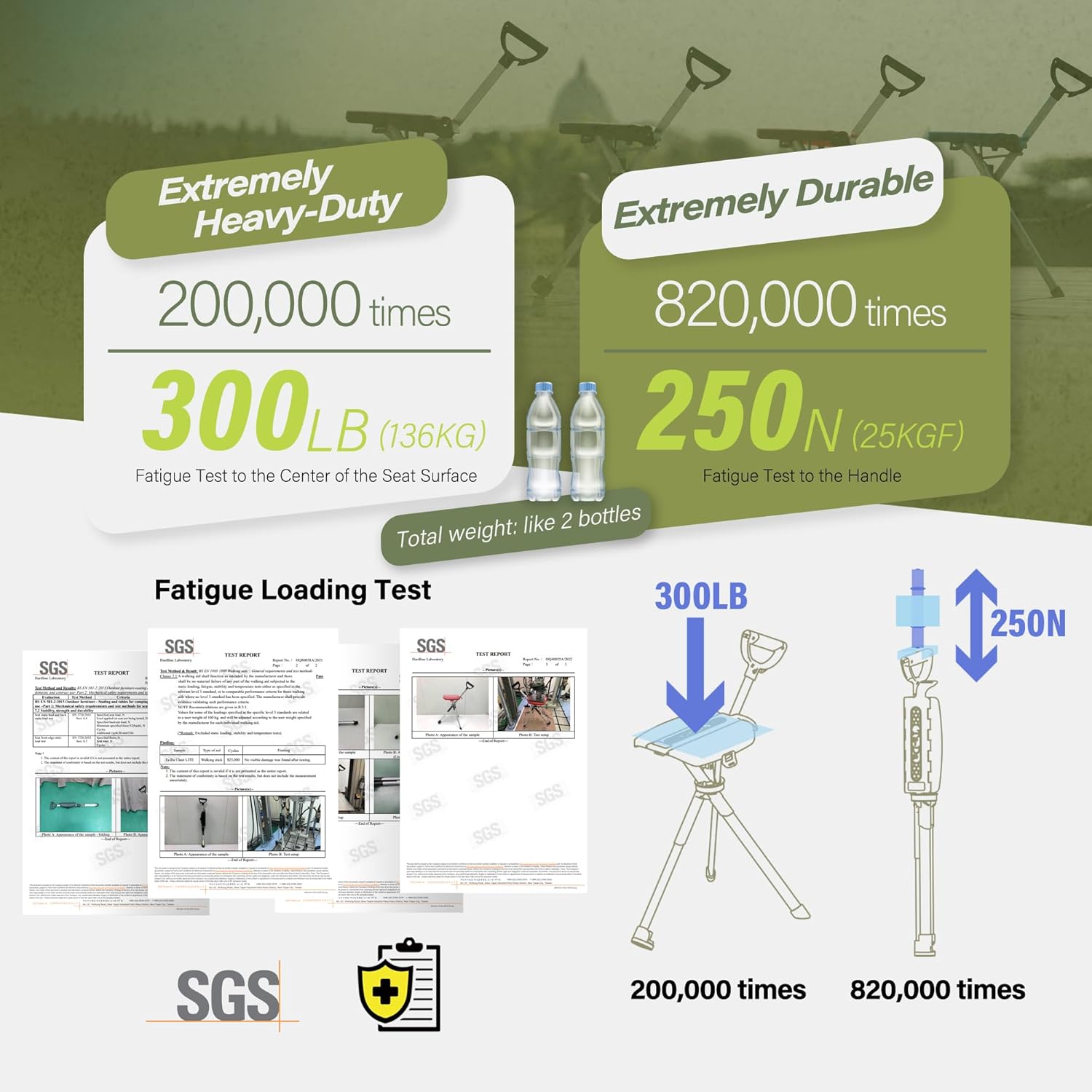 - REINFORCED STRUCTURE: Dual stability and Reinforced Structure, with European EN 581 standard tested by SGS. It also complies with CNS 15192 Taiwan National standard. Suitable for using as a camping chair with the function of a walking stick at the same time.