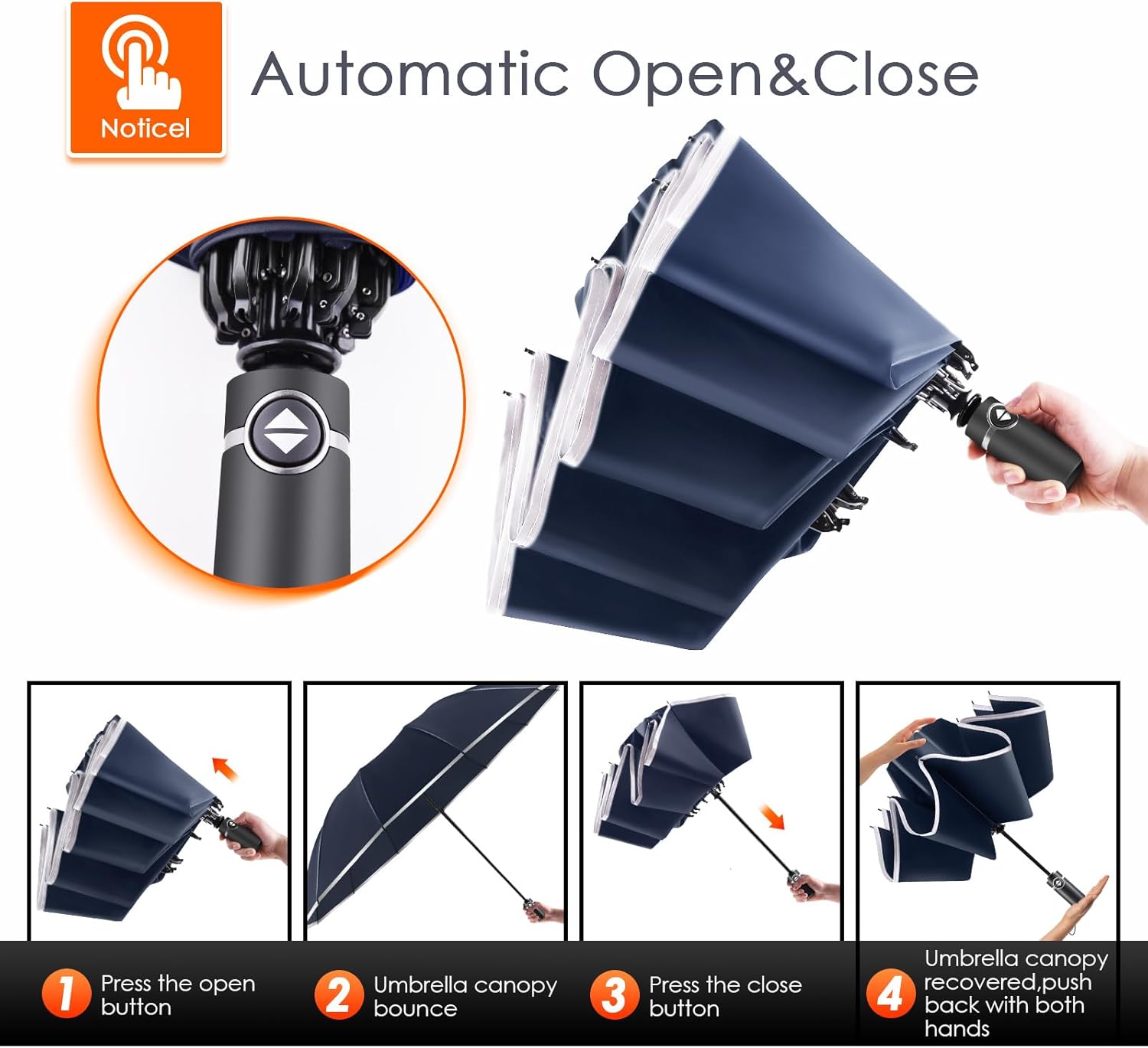 - ☂【Extremely Convenient】Our reverse folding umbrella has a fully automatic system, perfect for one-handed operation. Open or close the umbrella with the push of a button. It is easy to carry without taking up much space and stores in your car, briefcases, backpacks, travel bags, etc... Suitable for women and men, suitable for travel and outdoor activities.