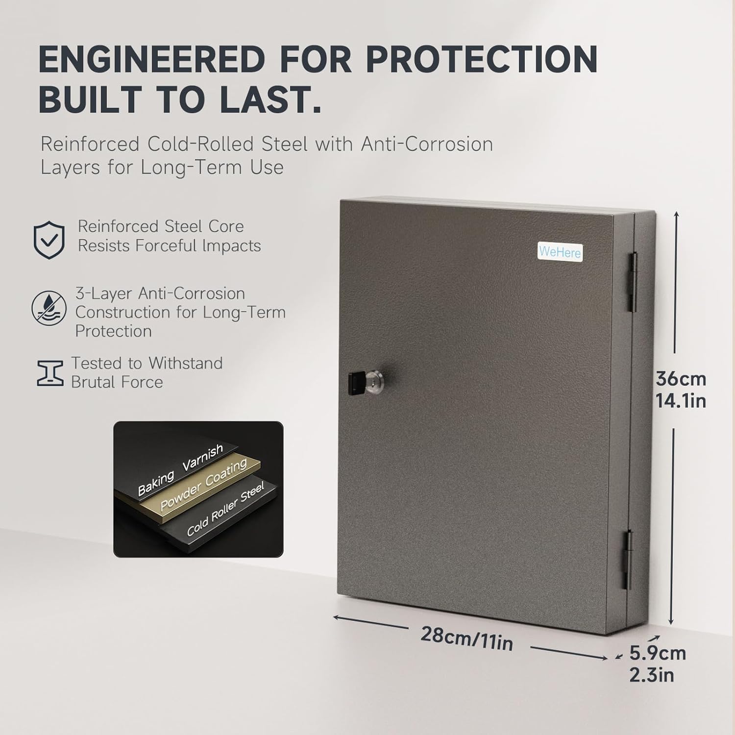 - Key Storage Box: Made of 0.6mm colde roller steel with powder coated and scratch resistant, Key Hooks made of plastic with spacious 16 positions, securely store your keys and keep them well organized