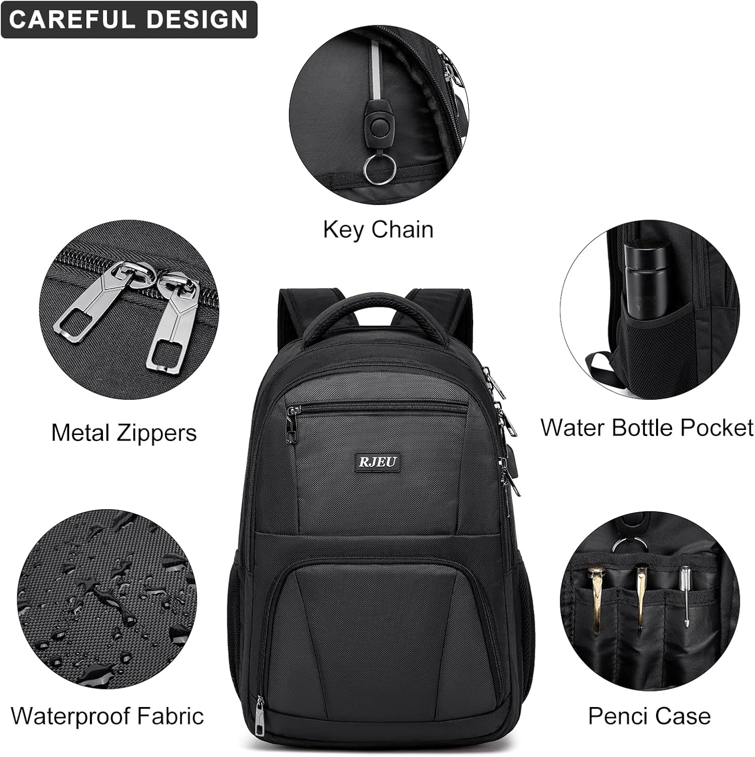 School Backpack for Teen Boys,15.6 Inch Anti Theft Laptop Bookbag with USB Charging Port, Water Resistant College, High School, Ergonomic Straps, Multiple Compartments, Men, Black