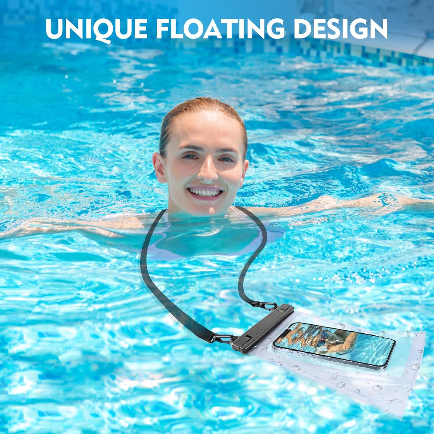 - [10X FLOATING FLOATABILITY] This floating waterproof phone pouch can withstand 500 grams of buoyancy, even with 3 cell phones and items can still float, prevent valuables sink in the water! This clear waterproof pouch (Meet dimensions for stadiums) can be used for stadiums/concerts; Suitable for travel or outdoor/water activities such as surfing, tubing trip, beach, boating, fishing, swimming, kayaking, snorkeling, cruises, water parks, etc. A must-have accessory for vacation trips