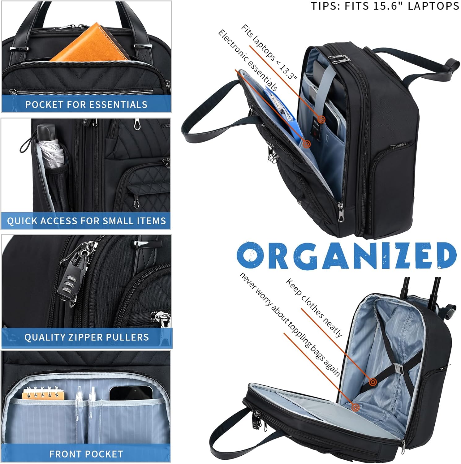 - HASSLE-FREE TRAVEL: Top with sturdy carry handle for easy lifting. Back with a smart Sleeve allows the bag to be placed over the handle of most upright luggage pieces.