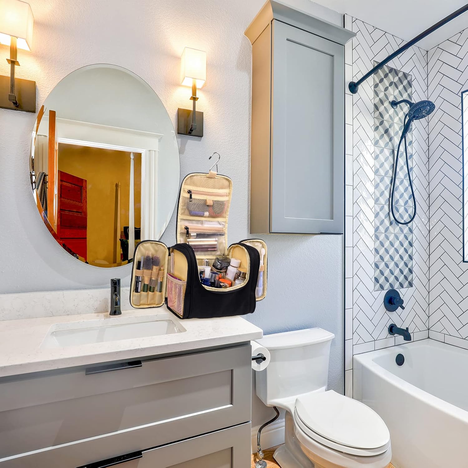 - 【HANGING DESIGN】The sturdy hook is strong enough to hang your travel toiletry bags.All toiletries and cosmetics are clearly displayed.More easier to access.