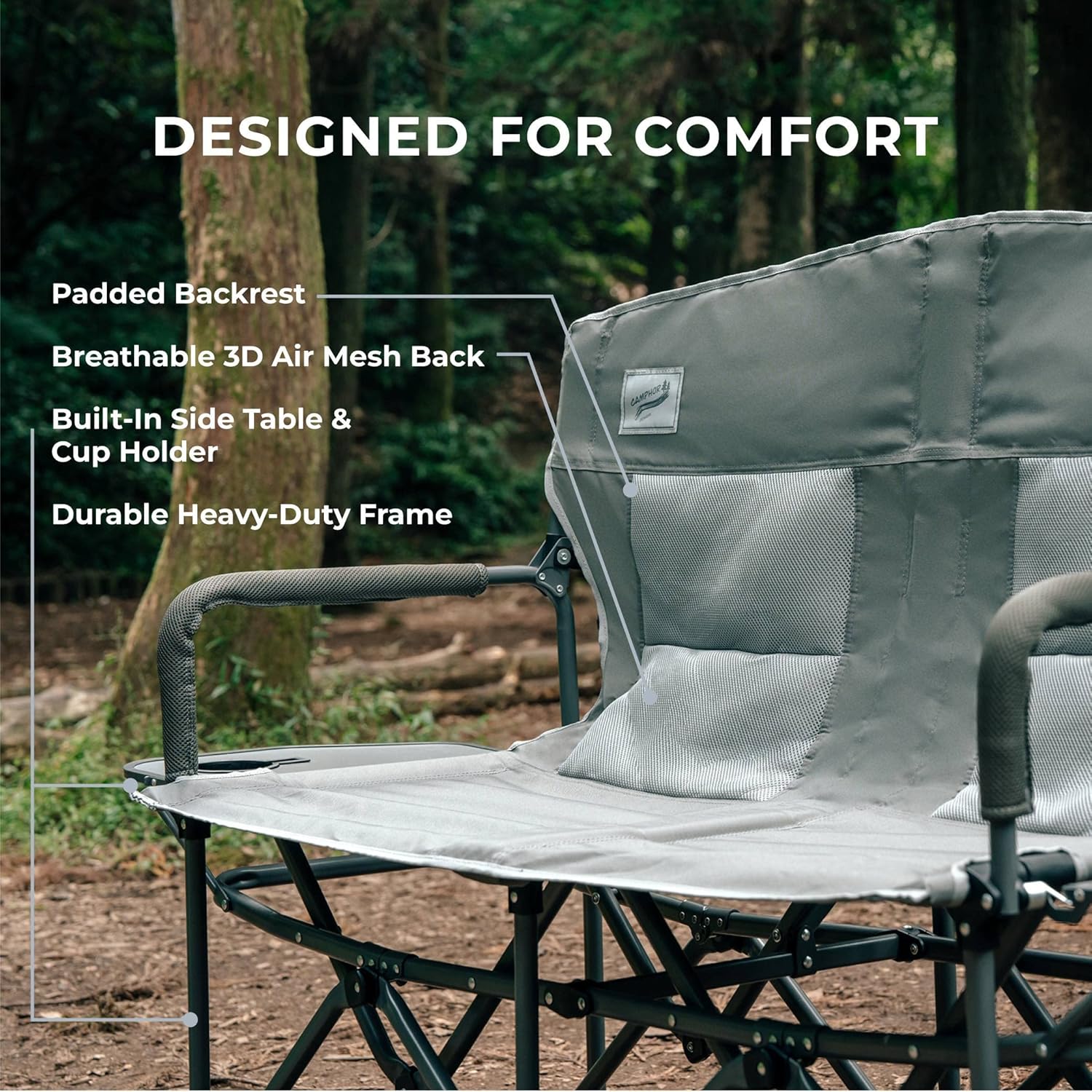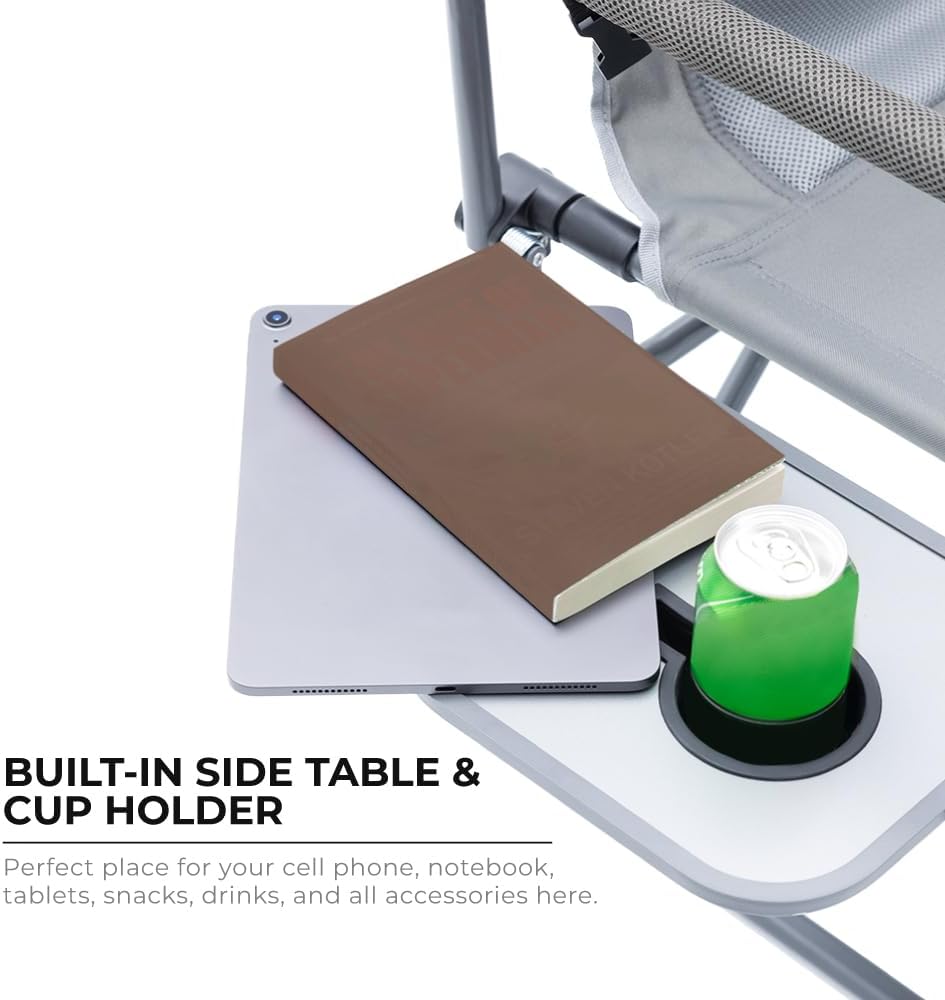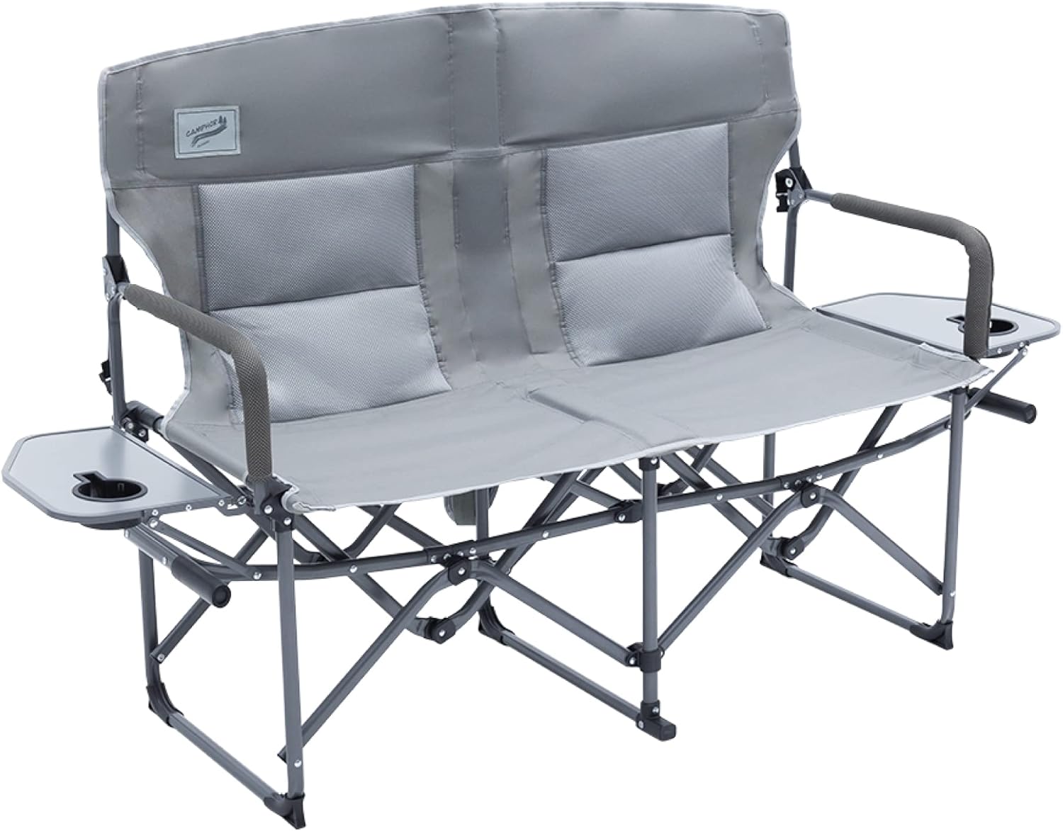 Oversized Double Portable Folding Director’s Loveseat Chair with Padded Backrest, Side Table | Outdoor Sports, Beach, Lawn, Hunting, Tailgating, Fishing| Supports 300 Lbs/Seat