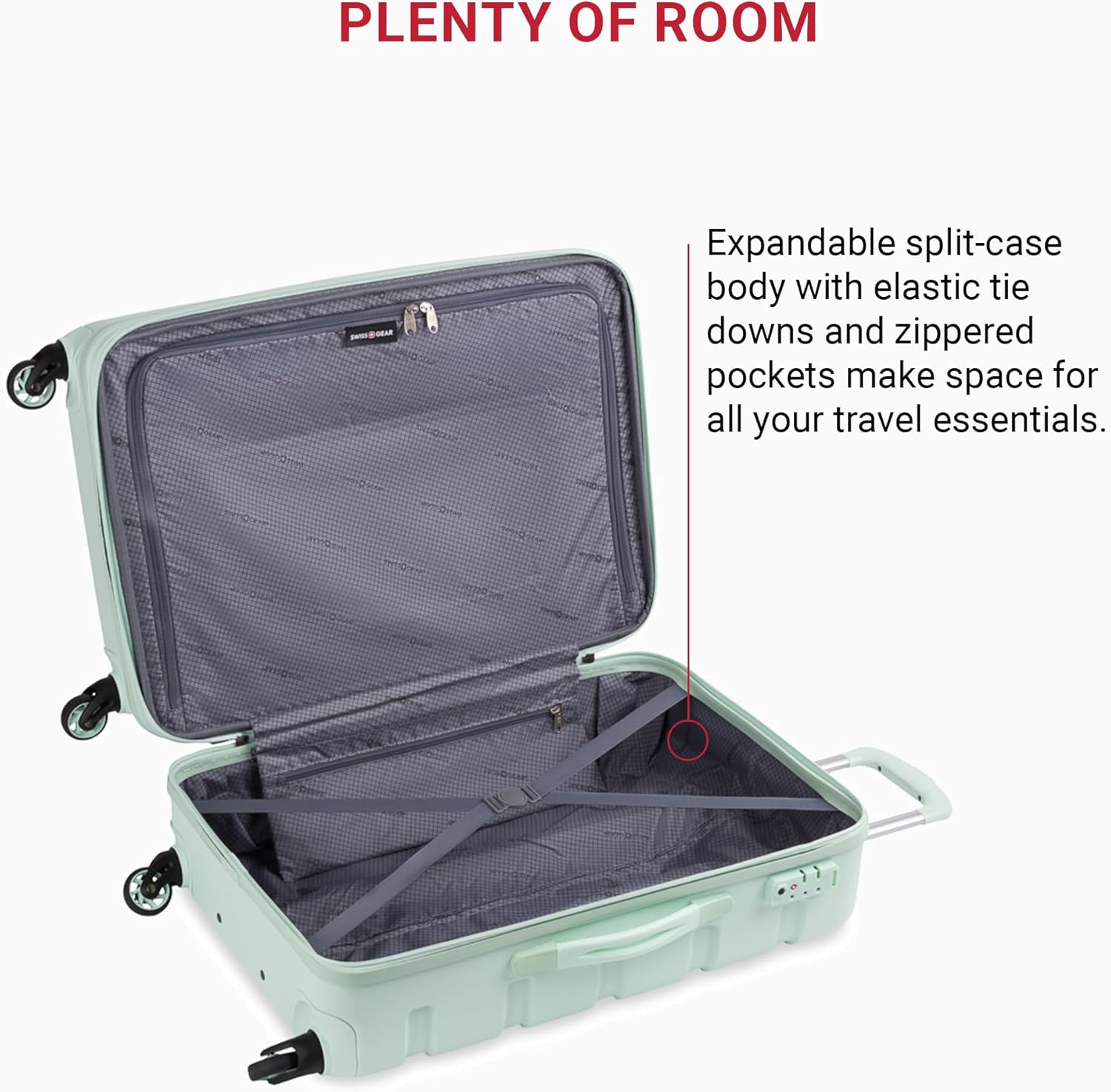 SwissGear 7366 Hardside Expandable Luggage with Spinner Wheels, Clearly Aqua, Checked-Medium 23-Inch