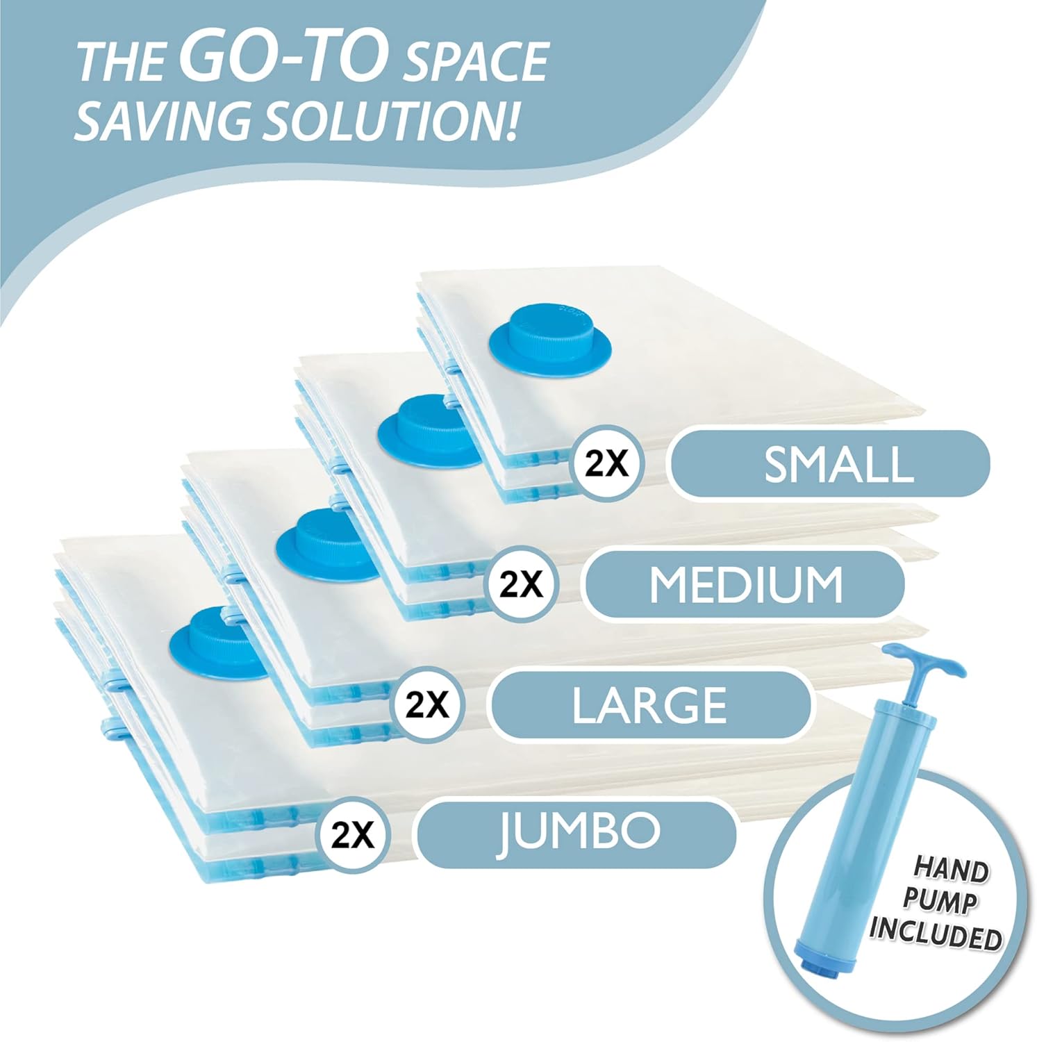 8 Pack Vacuum Storage Bags, Space Saver Bags (2 Jumbo/2 Large/2 Medium/2 Small) Compression Storage Bags for Comforters and Blankets, Vacuum Sealer Bags for Clothes Storage, Hand Pump Included