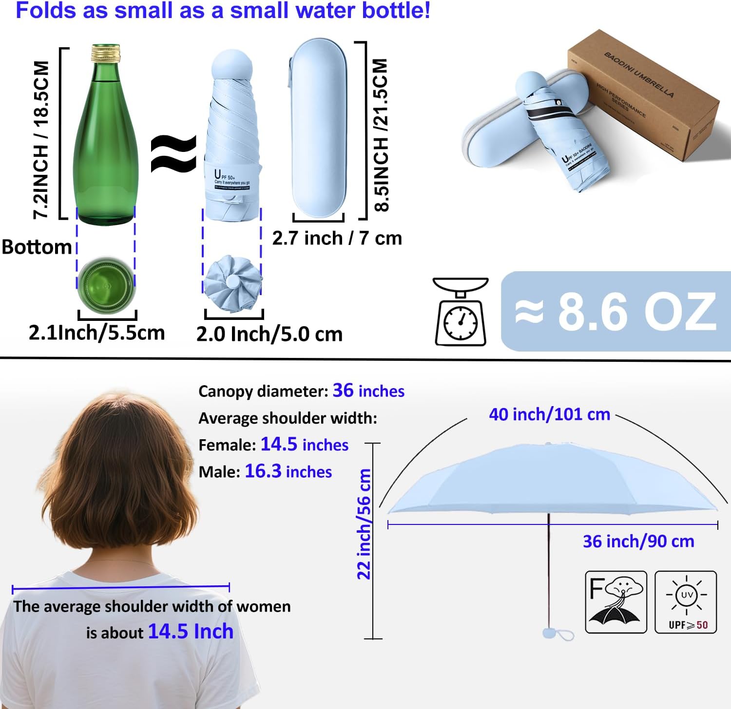 BAODINI Travel Mini Umbrella for Purse With Case-Small Compact UV Umbrella Protection Sun-Lightweight Tiny Pocket umbrella a with Case for Women, Girls