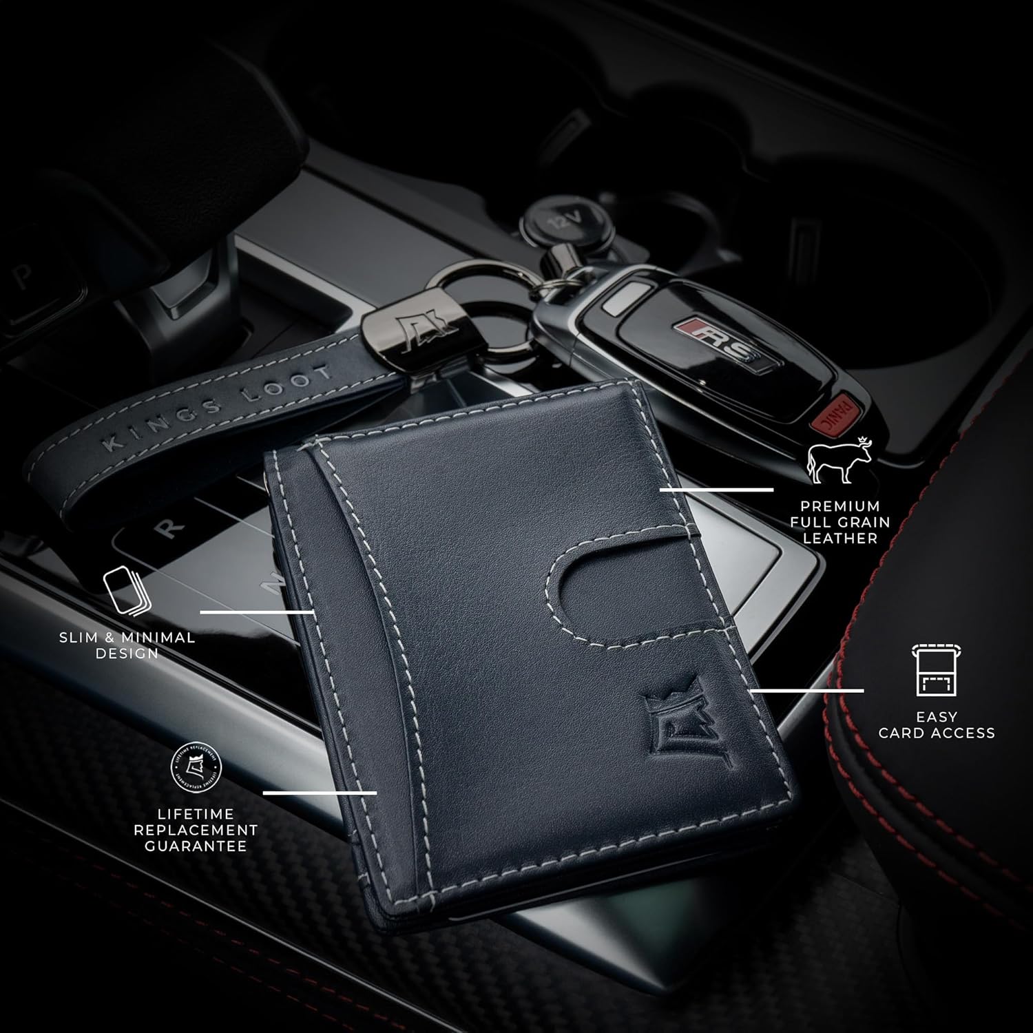 Kings Loot Custom Wallet for Men | Engraved Leather Slim Wallet with Money Clip | Personalized RFID Blocking Design | Minimalist & Stylish Wallets (Blue)