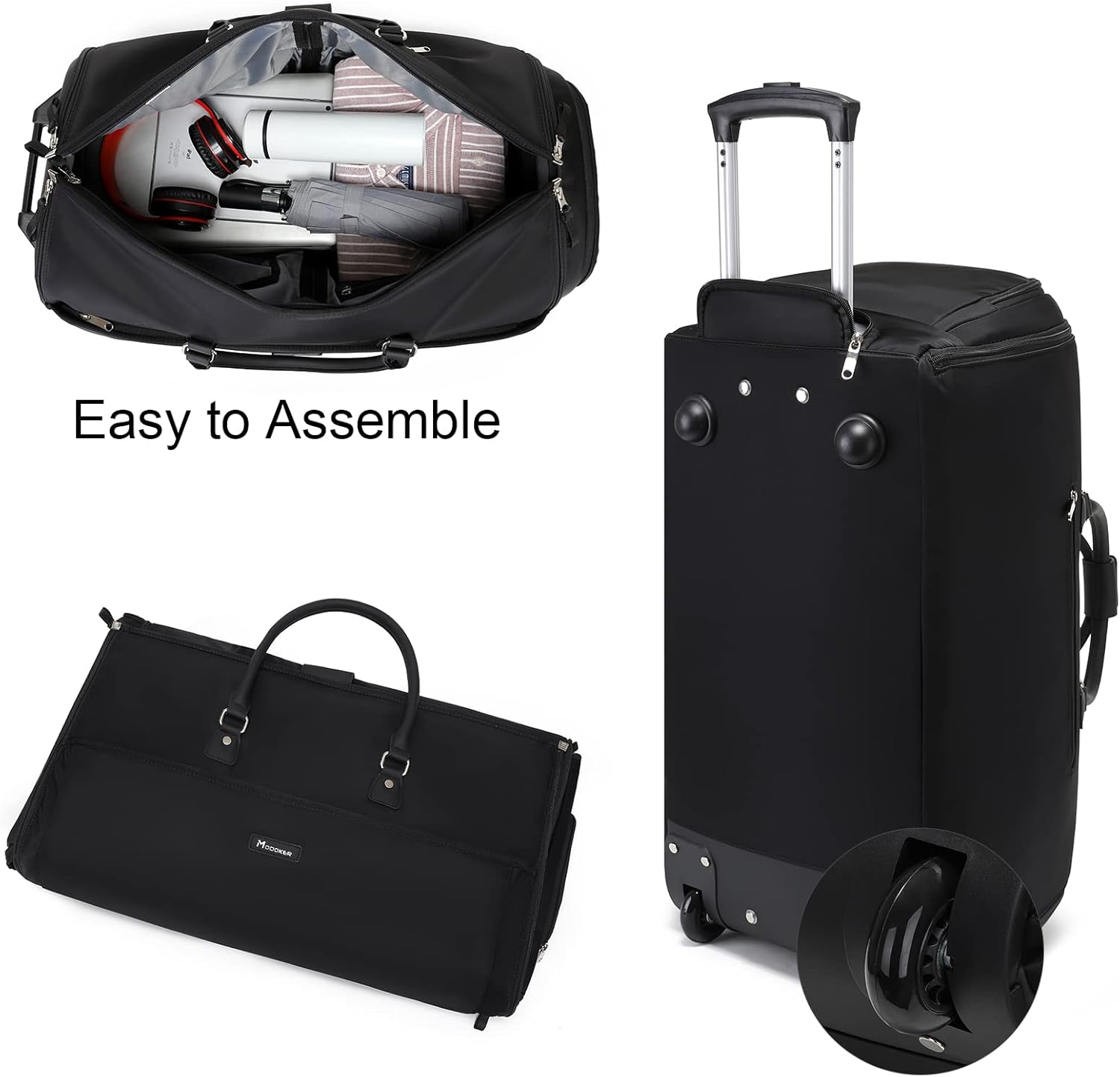 Modoker Rolling Garment Bags, Large Garment Duffle Bag with Wheels, 3 in 1 Garment Suit Luggage Bag for Women Men Business Travel Weekender, Black