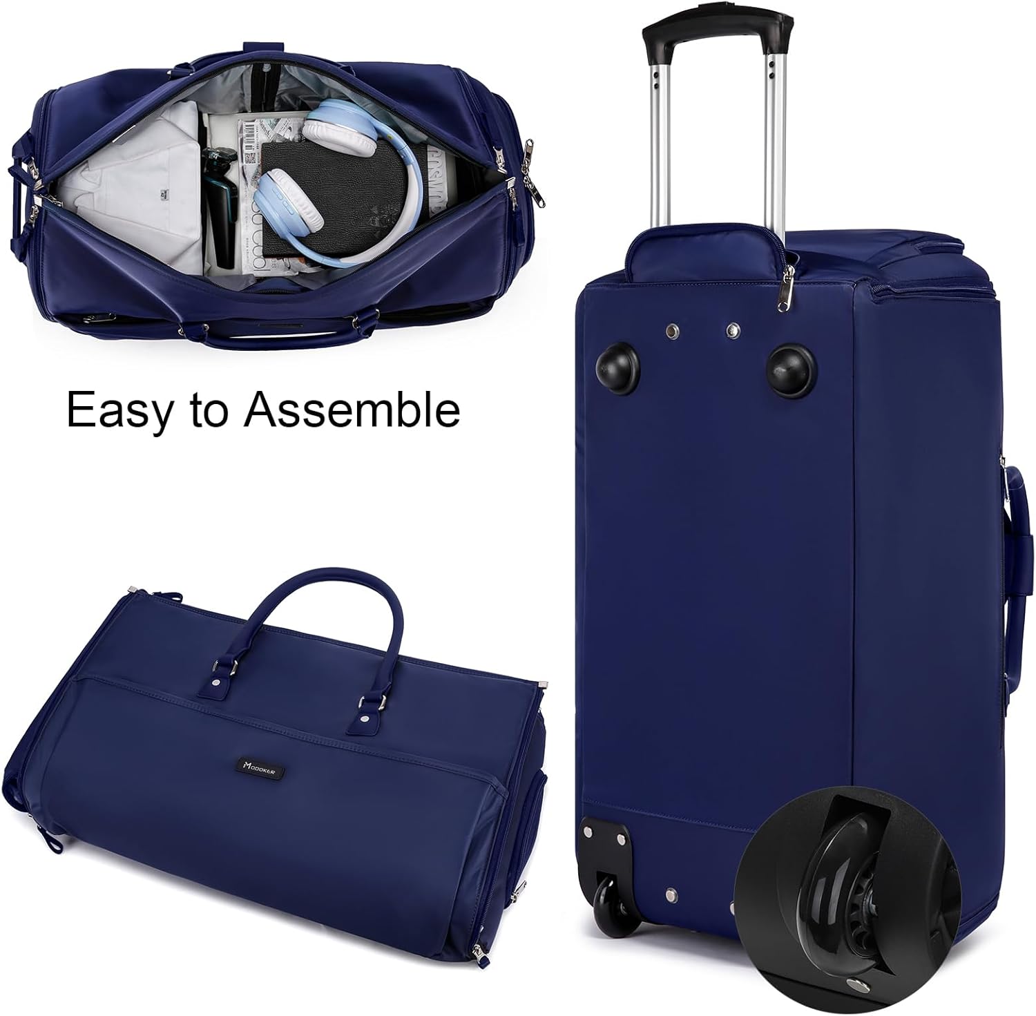 Modoker Rolling Garment Bags, Large Garment Duffle Bag with Wheels, 3 in 1 Garment Suit Luggage Bag for Women Men Business Travel Weekender, Blue