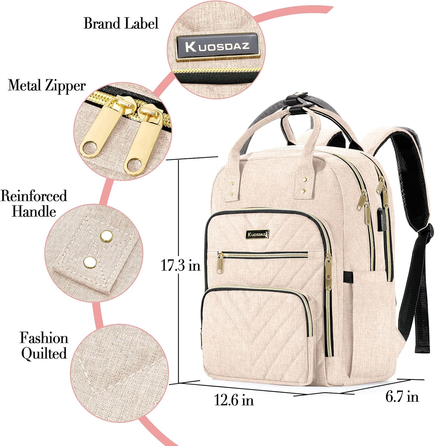 Laptop Backpack for Women, High School Bookbag for Girls with USB Port Charging, 15.6 Inch Water Resistant Computer Bag for Work, Travel College Back Pack Purse Gifts for Student Teacher, Beige