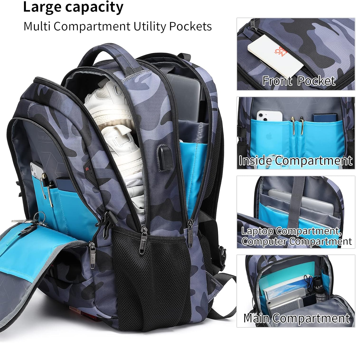 DUSLANG 17 Inch Travel Laptop Backpack Water Resistant Hiking Backpack for Men Laptop Bag with USB Charging Port,Camouflage green