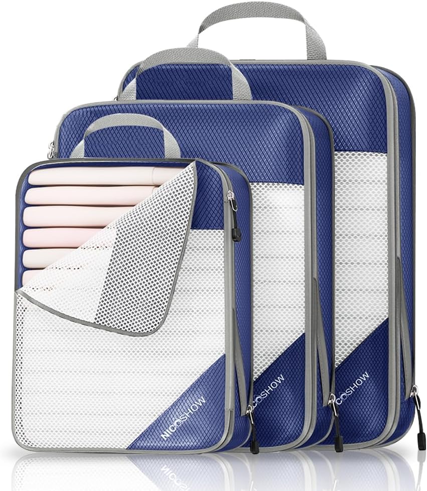 - Maximize Luggage Space: With NICOSHOW compression packing cubes, you can pack smarter and fit more into your luggage. Our two-zipper system packing cube can compress clothes and save up to 60% of space