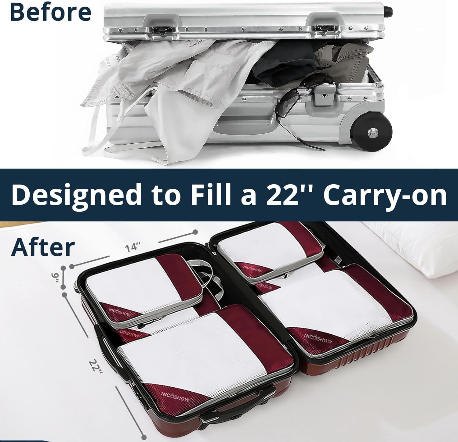 - Maximize Luggage Space: With NICOSHOW compression packing cubes, you can pack smarter and fit more into your luggage. Our two-zipper system packing cube can compress clothes and save up to 60% of space