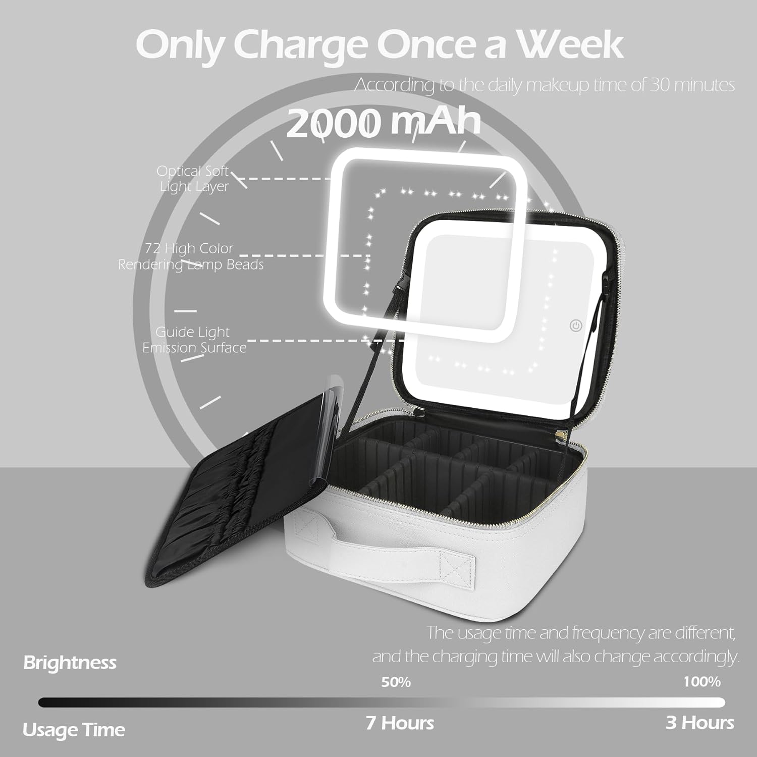 - đđ»ăMeticulous Selection of Materials, High Standard ProductionăDouble zippers of this lighted makeup case are controlled by high standards from chain cloth selection, sprocket arrangement, polishing, electroplating, and subsequent oil sealing and waxing processes to ensure smoother pulling. Specially customized sturdy plastic case for fixing the vanity mirror, whether it is placed in the luggage or directly on the car, the mirror surface will not break.