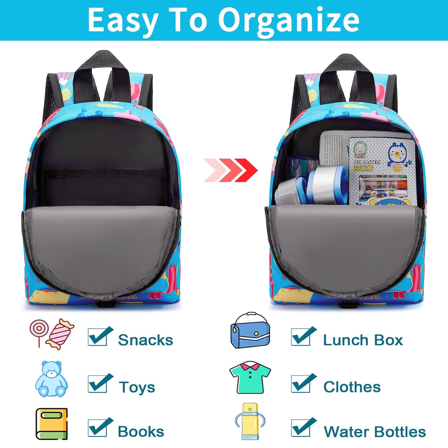 - Compact Size: The small kid harness backpack is suitable for toddlers aged 1-3 under weight of 38lbs. Length of the shoulder strap can be adjusted freely. Fantastic little backpack, perfect to fit your kids' essentials in like nappy, wipes, bottle, change of clothes, snack, toys etc.