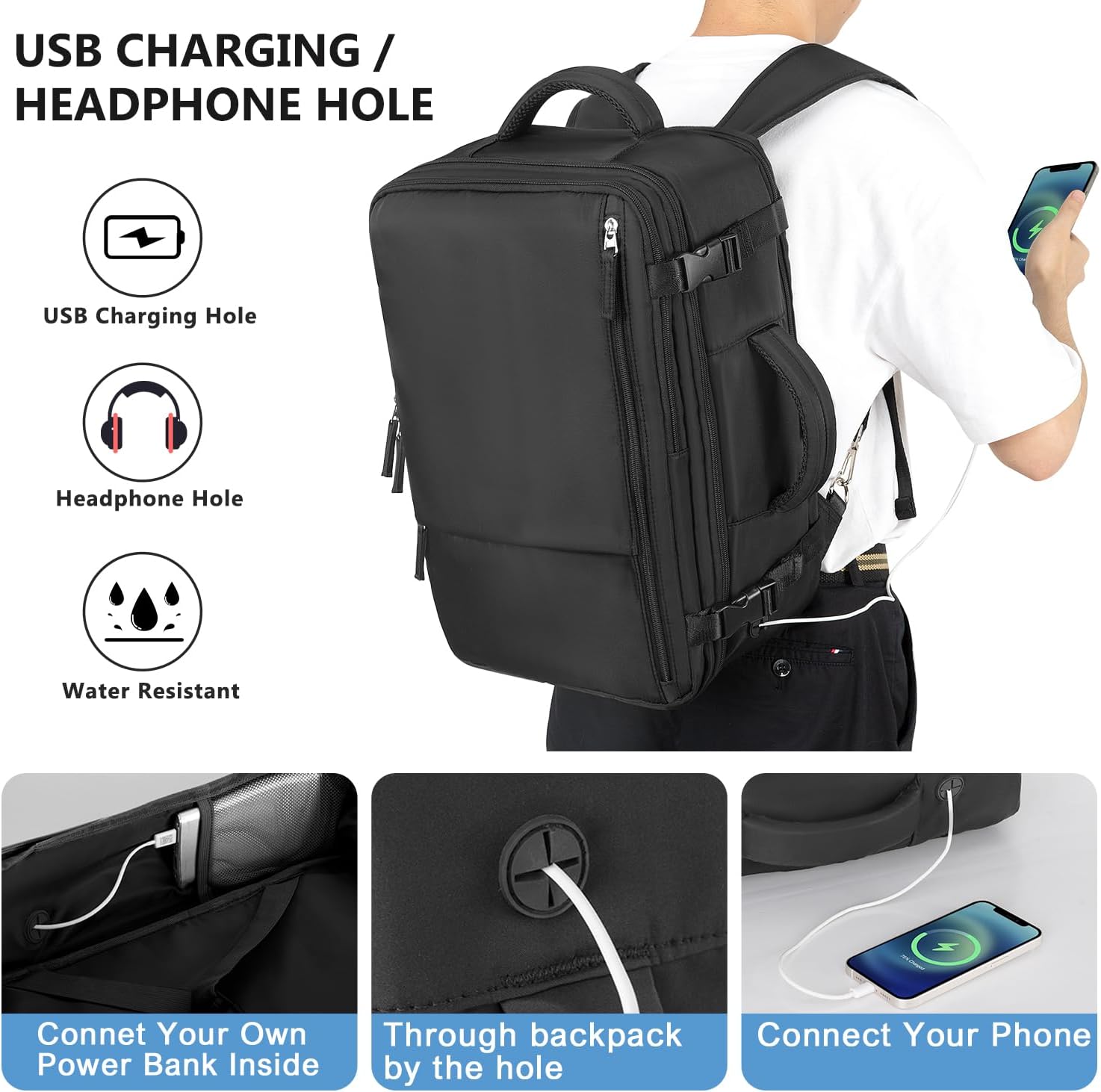 - Charging Hole & Anti-Theft Design: Our carry on backpack have charging hole desgin allows data cable pass through, so you can charge your phone while walking. Also, the anti-theft pocket on the back of the travel backpack for women mens allow you to put phone, passport or wallet in it. Making your journey and travelling more convenient wherever you go
