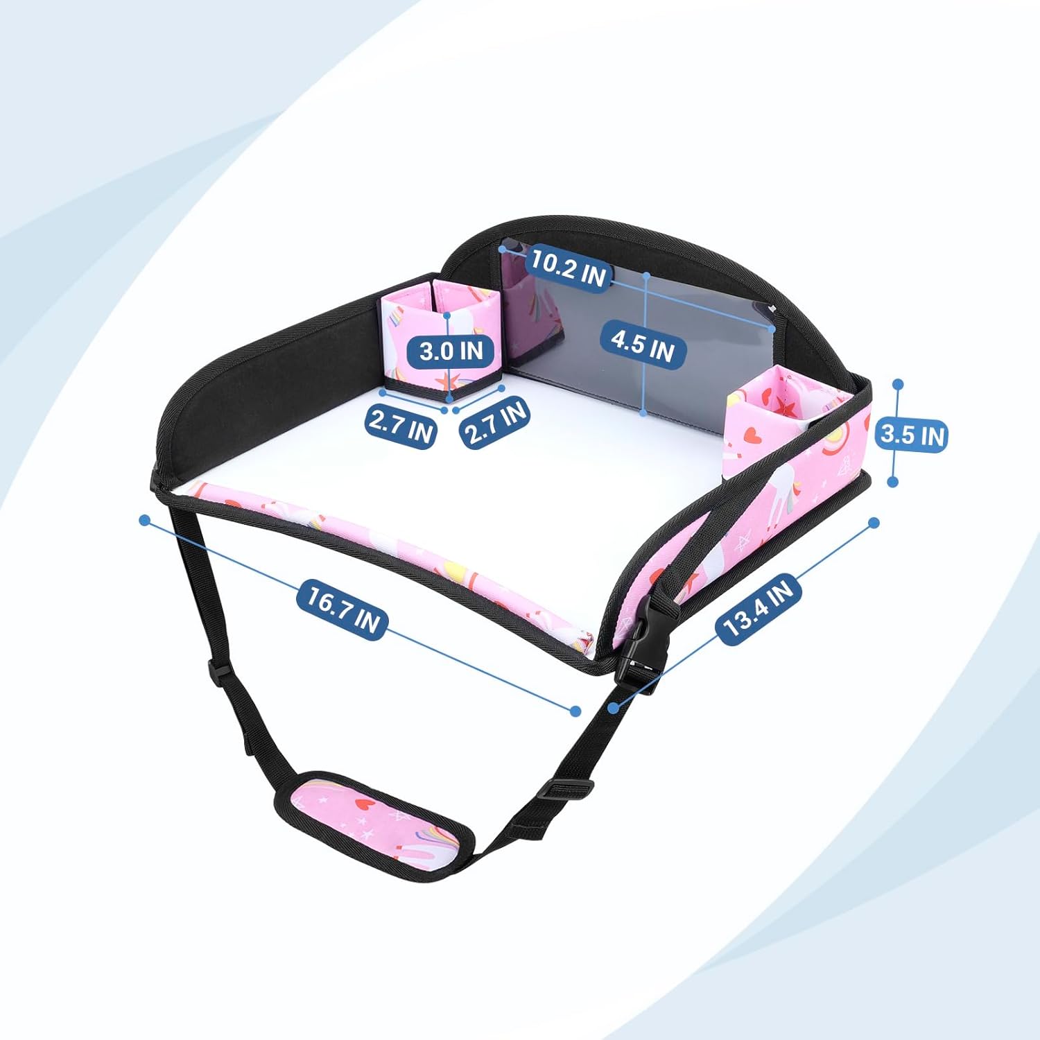 - Ideal For Kids Road Trips: Whether in the car, in the stroller or on the plane, wherever and whenever your child's creativity needs you, you can take the car travel tray with you! Carseat table trays can exercise your child's imagination and stimulate their hidden potential through play, and children's attention and independence are significantly improved in this case.