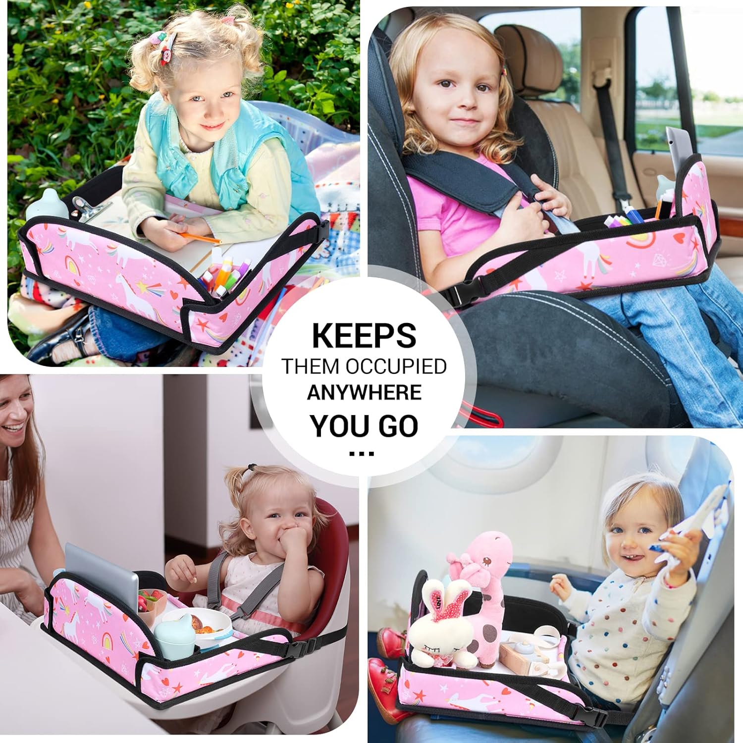 COOLBEBE Kids Travel Tray for Toddler Car Seat, Travel Tray for Airplane, Toddler Car Seat Lap Tray, Carseat Table Tray for Kids Travel Activities (Pink Unicorn)