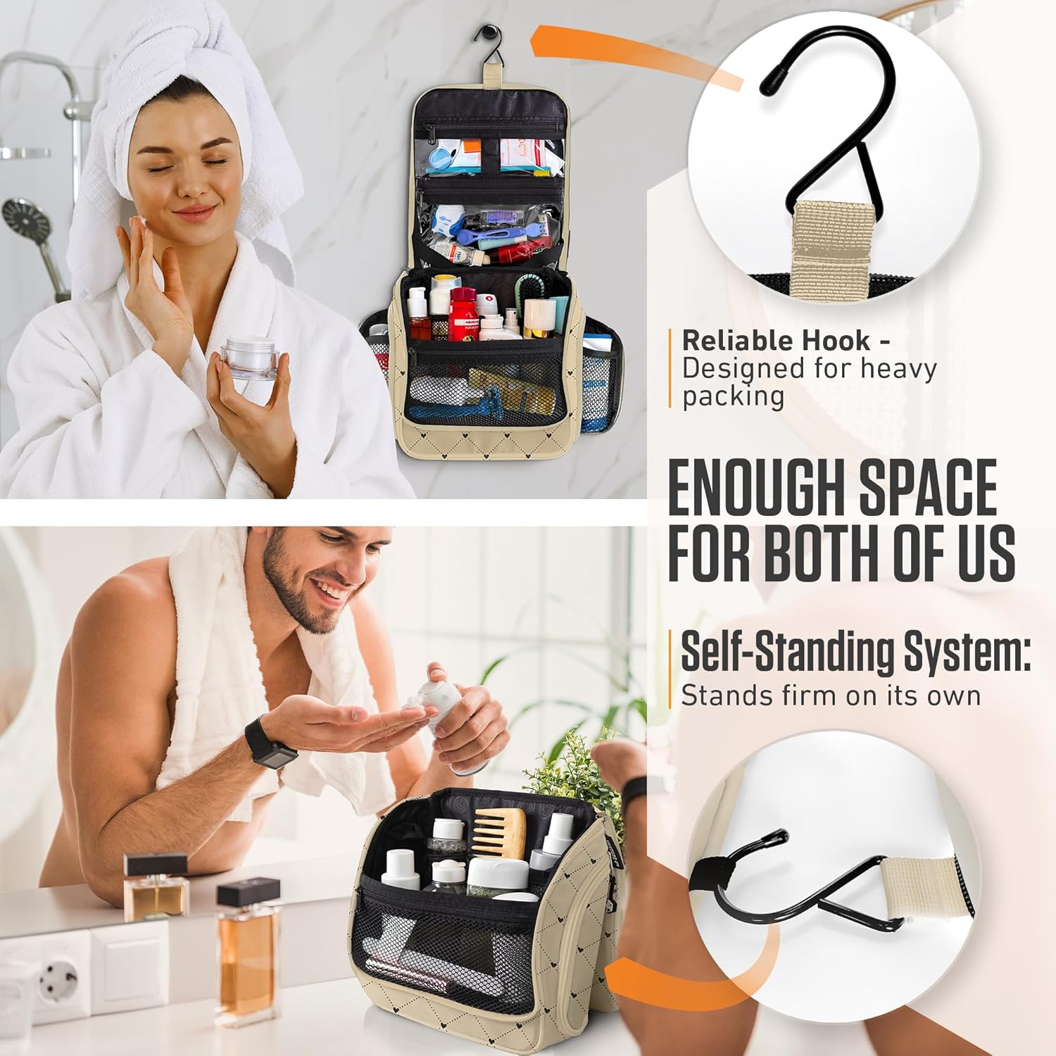 VENTURE 4TH Hanging Travel Toiletry Bag for Women & Men - Travel Organizer with Expandable Compartments & Removable Clear Pouch for Toiletries (Beige Diamonds)