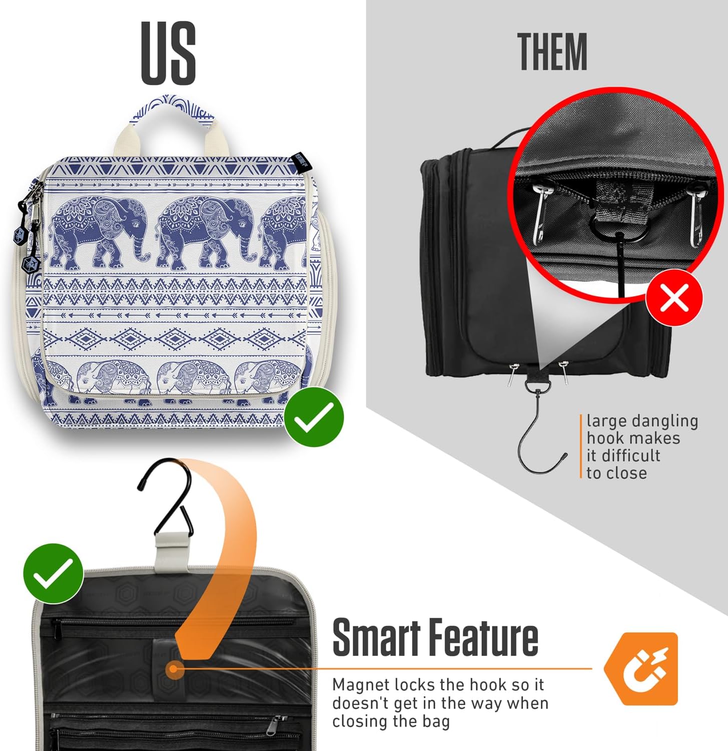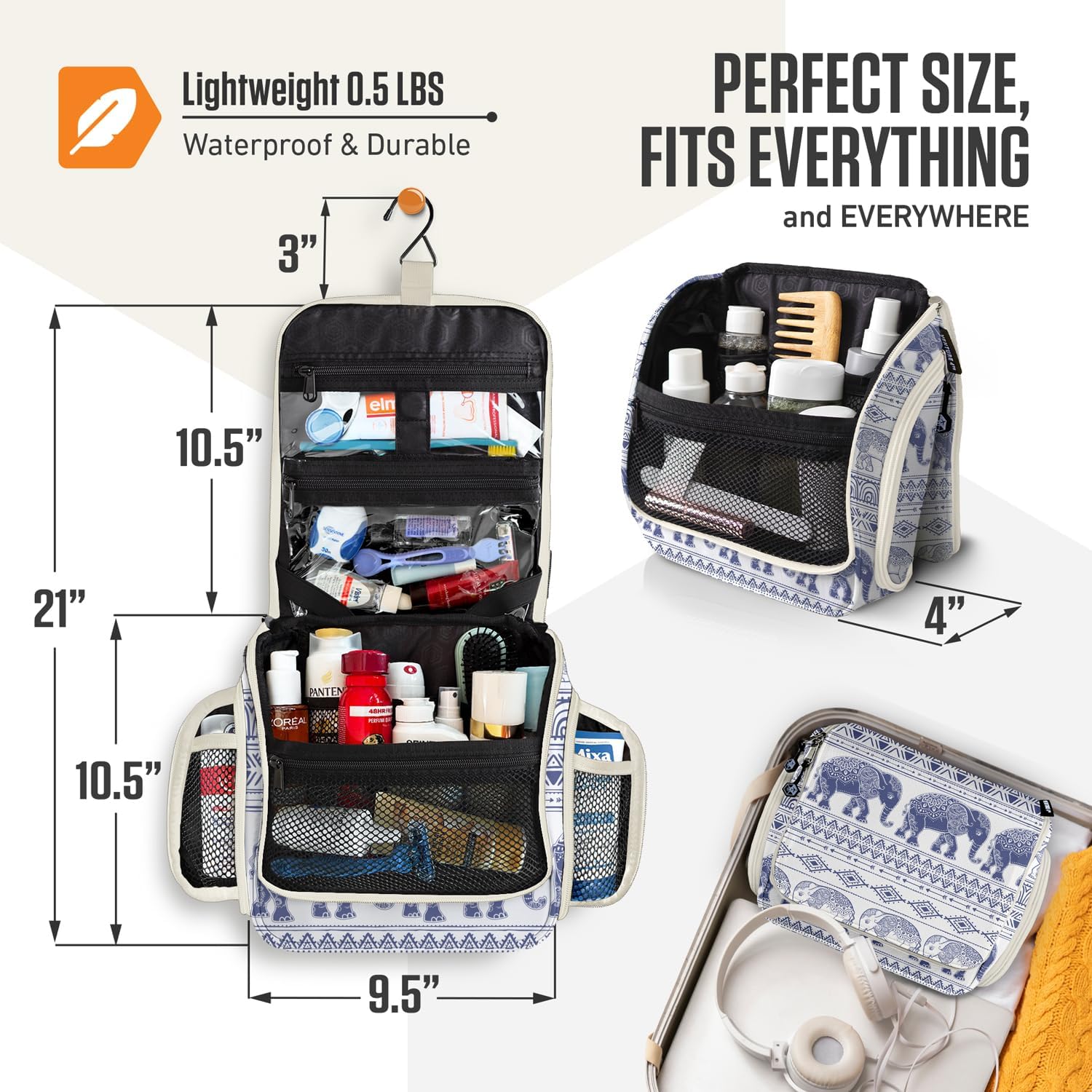 VENTURE 4TH Hanging Travel Toiletry Bag for Women & Men - Travel Organizer with Expandable Compartments & Removable Clear Pouch for Toiletries (Blue Elephant)