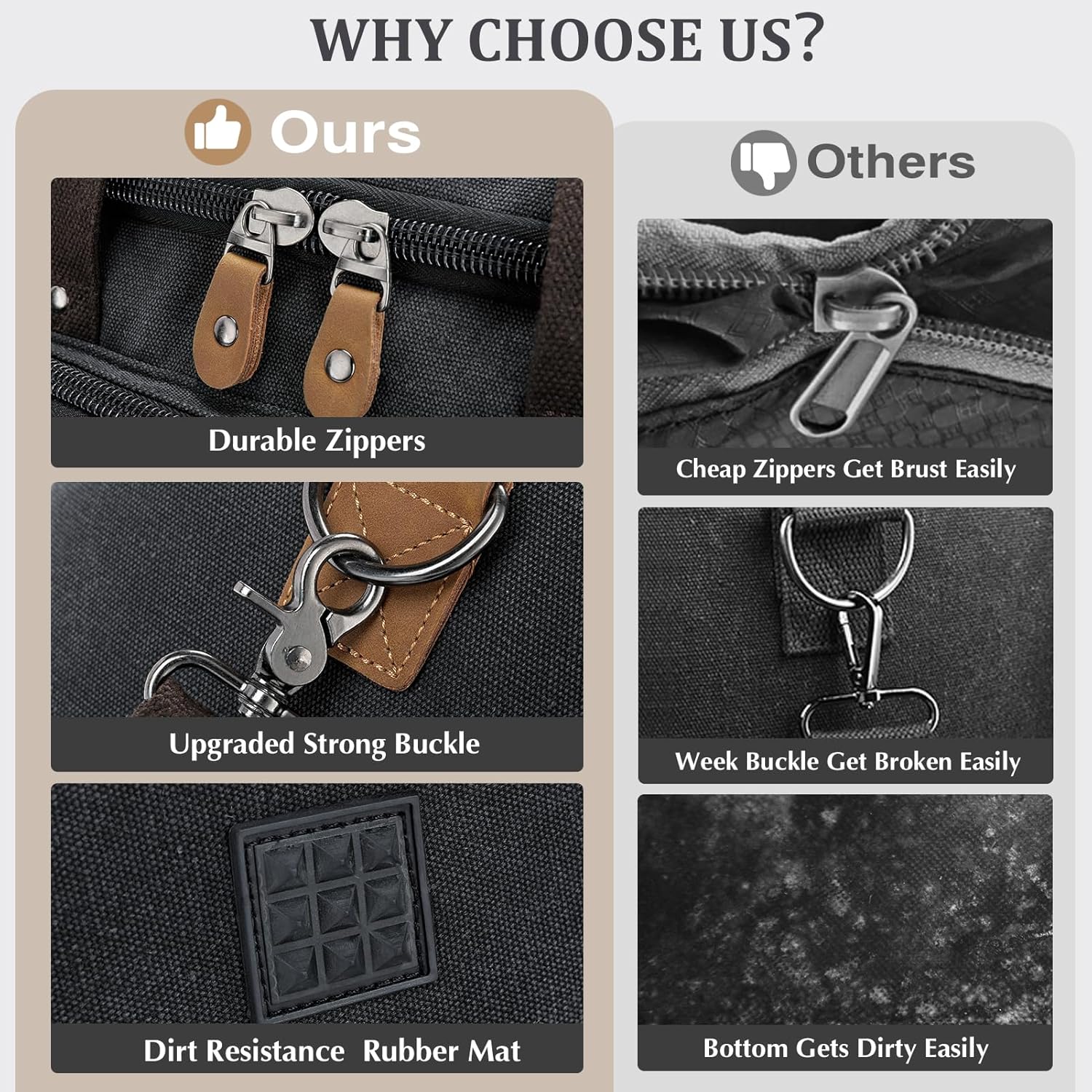 - Durable Materials:The Expandable Duffel Bag is made of high-quality canvas and premium ultra-fine fiber materials, featuring sturdy antique bronze hardware and smooth zippers that are durable and practical