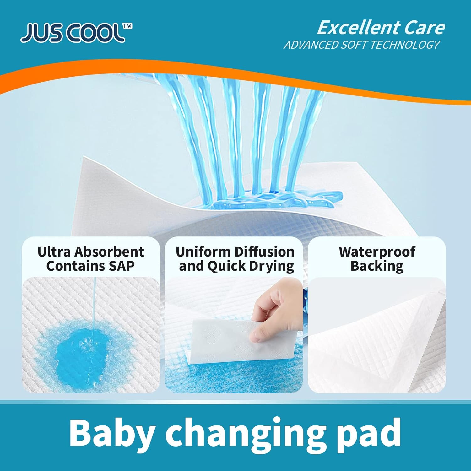 JUS COOL Baby Disposable Changing Pads, 24”x 24”(100 Count) Underpads Portable Diaper Changing Pads, Soft Bed Pads Ultra Absorbent and Waterproof