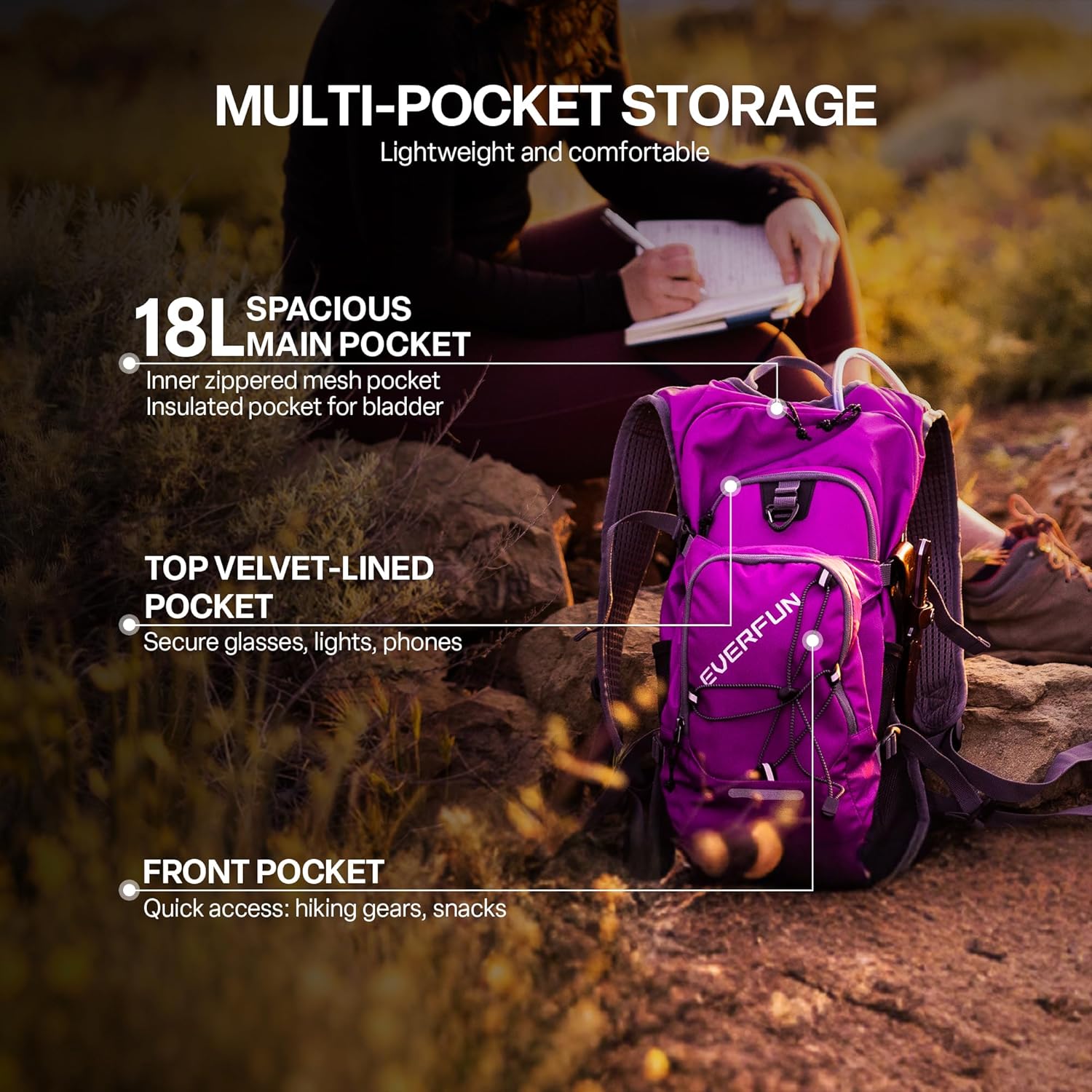 Everfun Hydration Backpack 18L with Water Bladder 2L/3L Hiking Water Backpack Women Men Hydration Pack Insulated Lightweight Day Hydropack with Storage for Hiking, Biking, Running, Festival