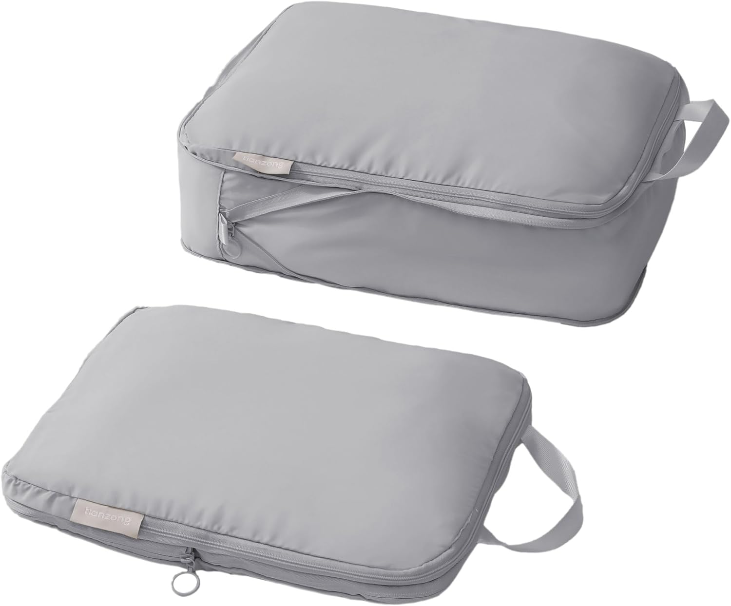 tianzong Compression Packing Cubes for Suitcases, Luggage Organizer Bags Set for Travel (Grey, 2 Pack Large)