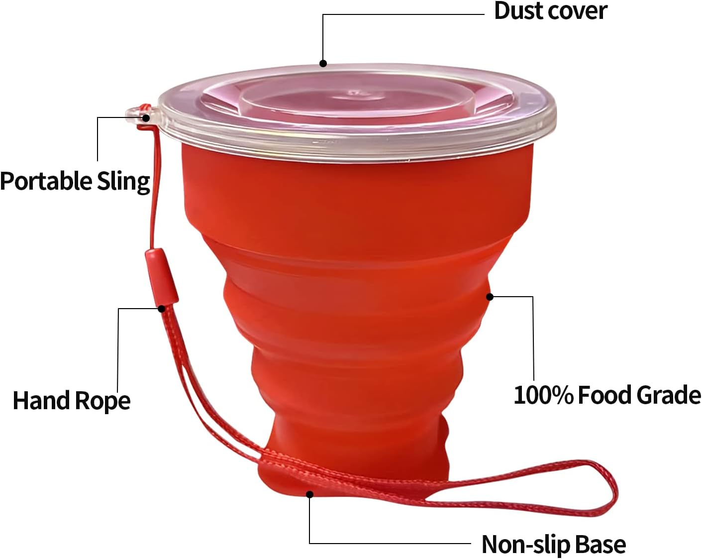 Collapsible Cup - Silicone Foldable Cup-Expandable Folding Drinking Cup -Reusable Portable Mugs Cups For Travel, Camping, Hiking, Survival, Car, Picnic, Beach, Holiday Vacation, Outdoor Sports Red