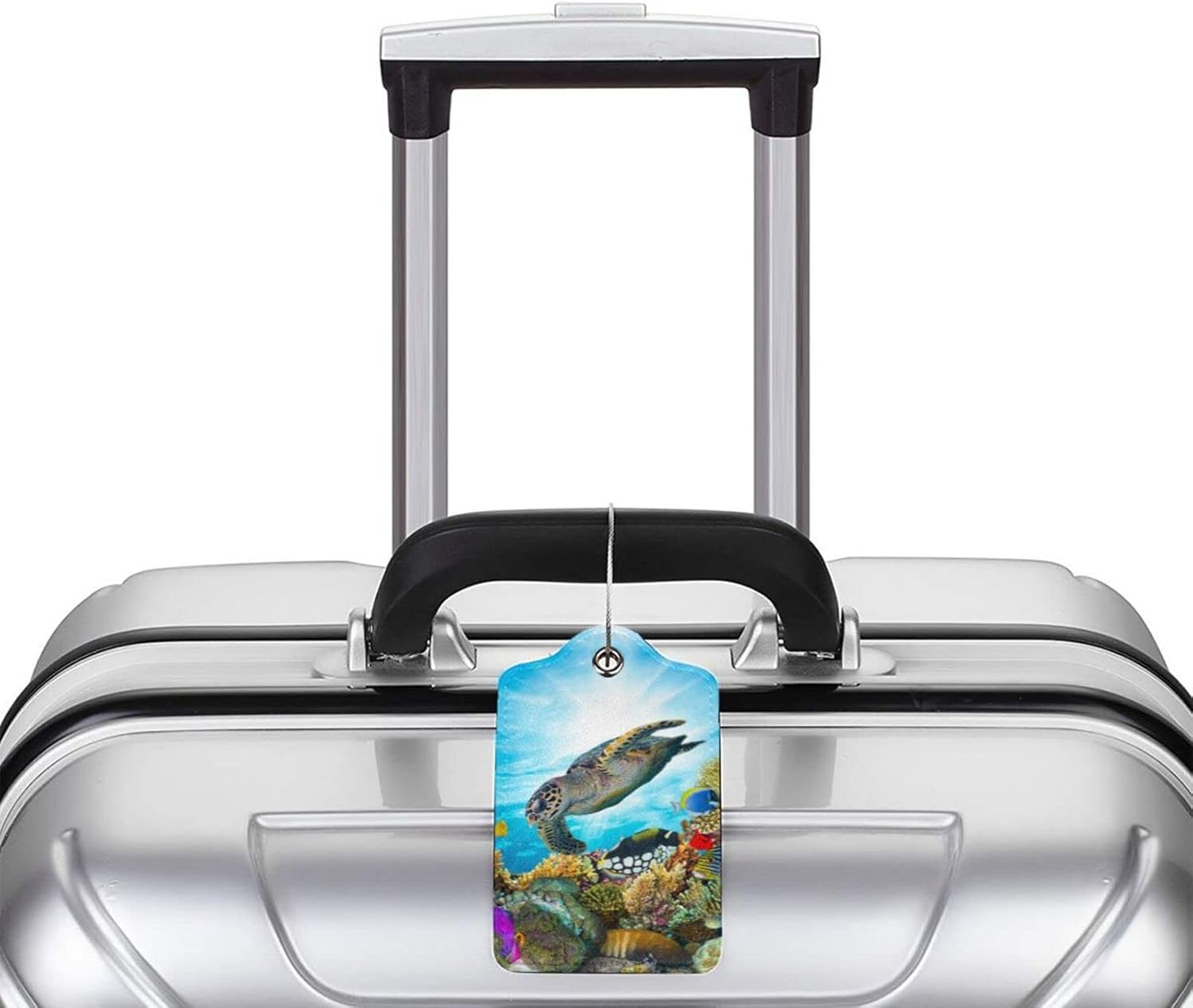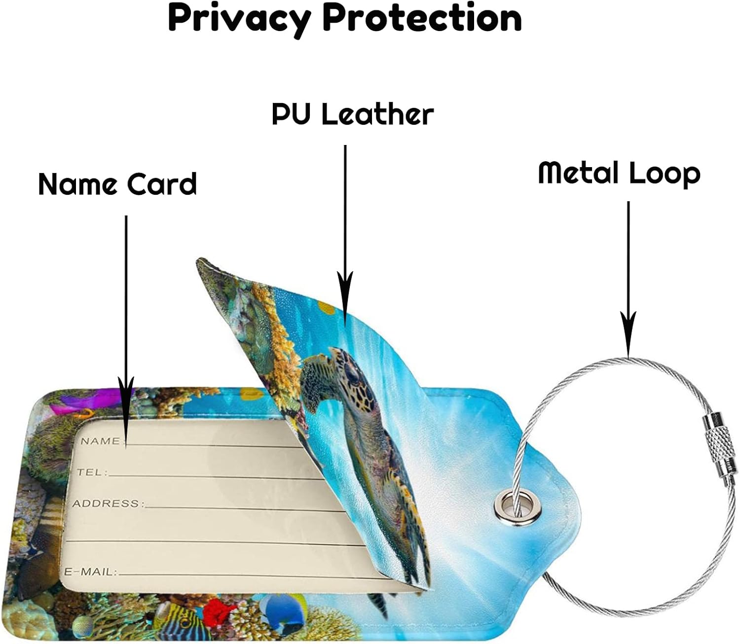 2 Pack Sea Turtle Luggage Tag for Suitcases, Cool Leather Suitcase Labels with Full Privacy Cover Id Name Card and Stainless Steel Loop, Funny Travel Identifiers Tags Luggage for Women Men Baggage