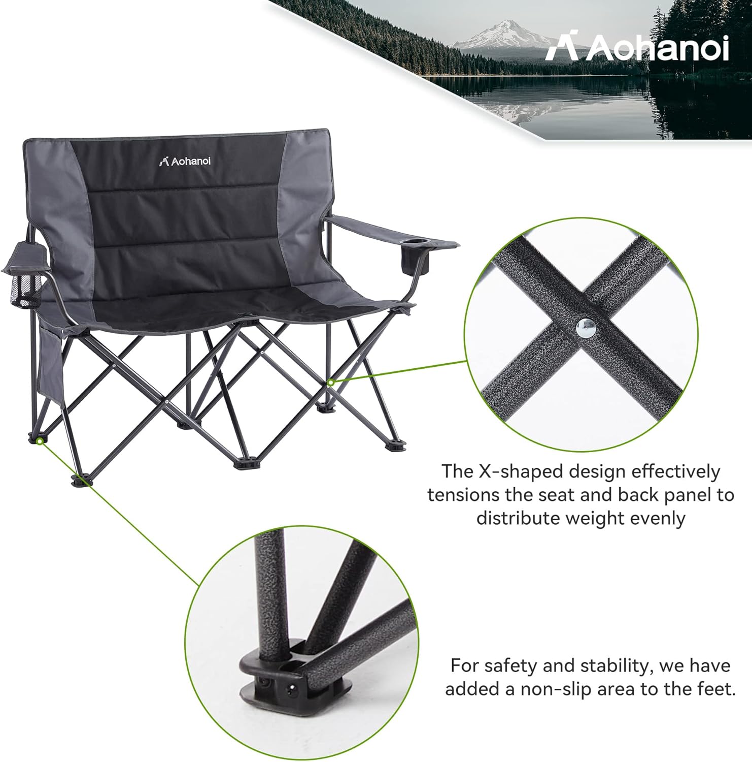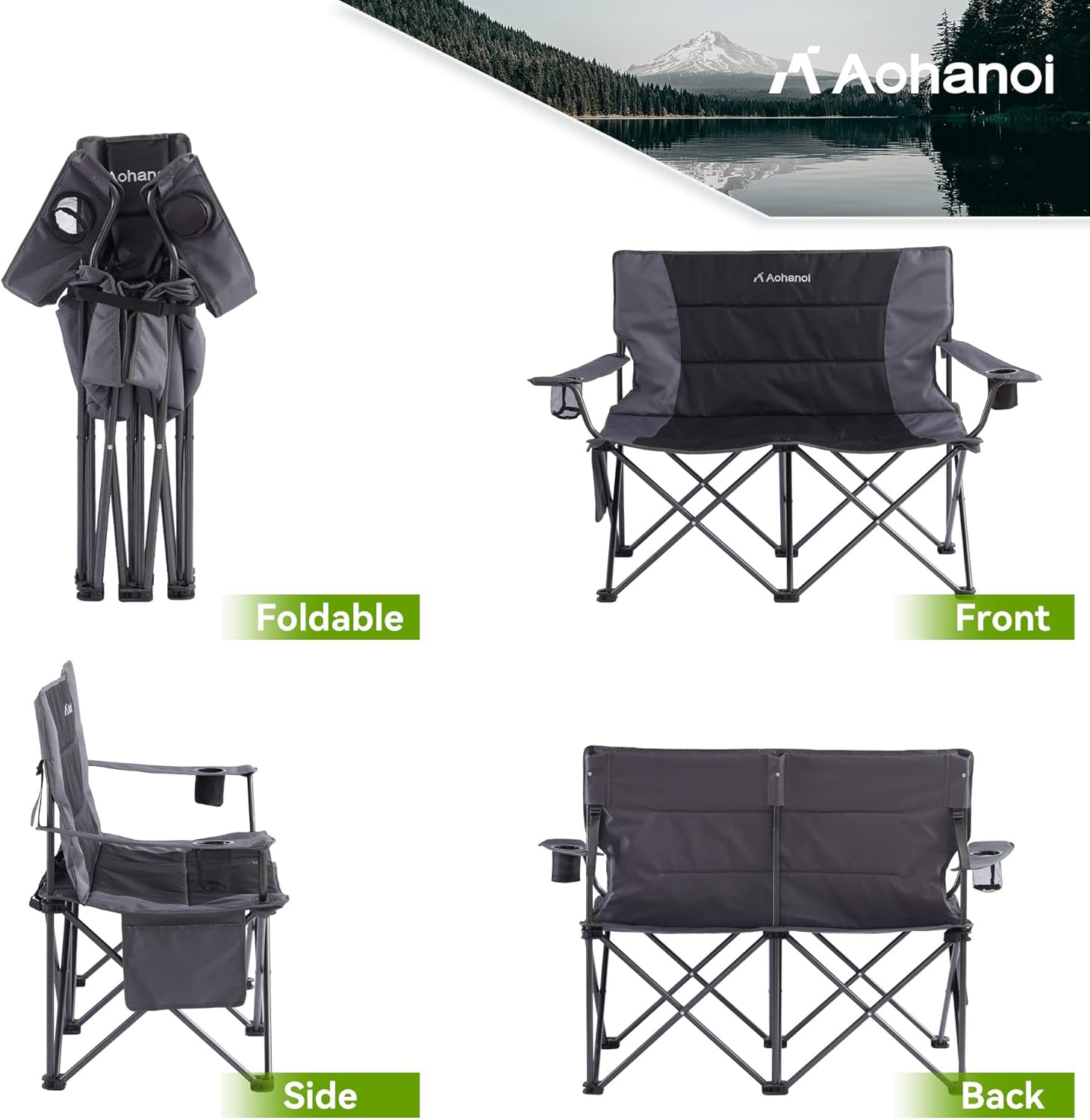 - 【Versatile for Any Outdoor Adventure】Perfect for patios, lawns, backyards, tailgating, or outdoor games, this two-person outdoor folding chair offers the ideal blend of comfort and functionality. Sit back, relax. Anytime, anywhere!