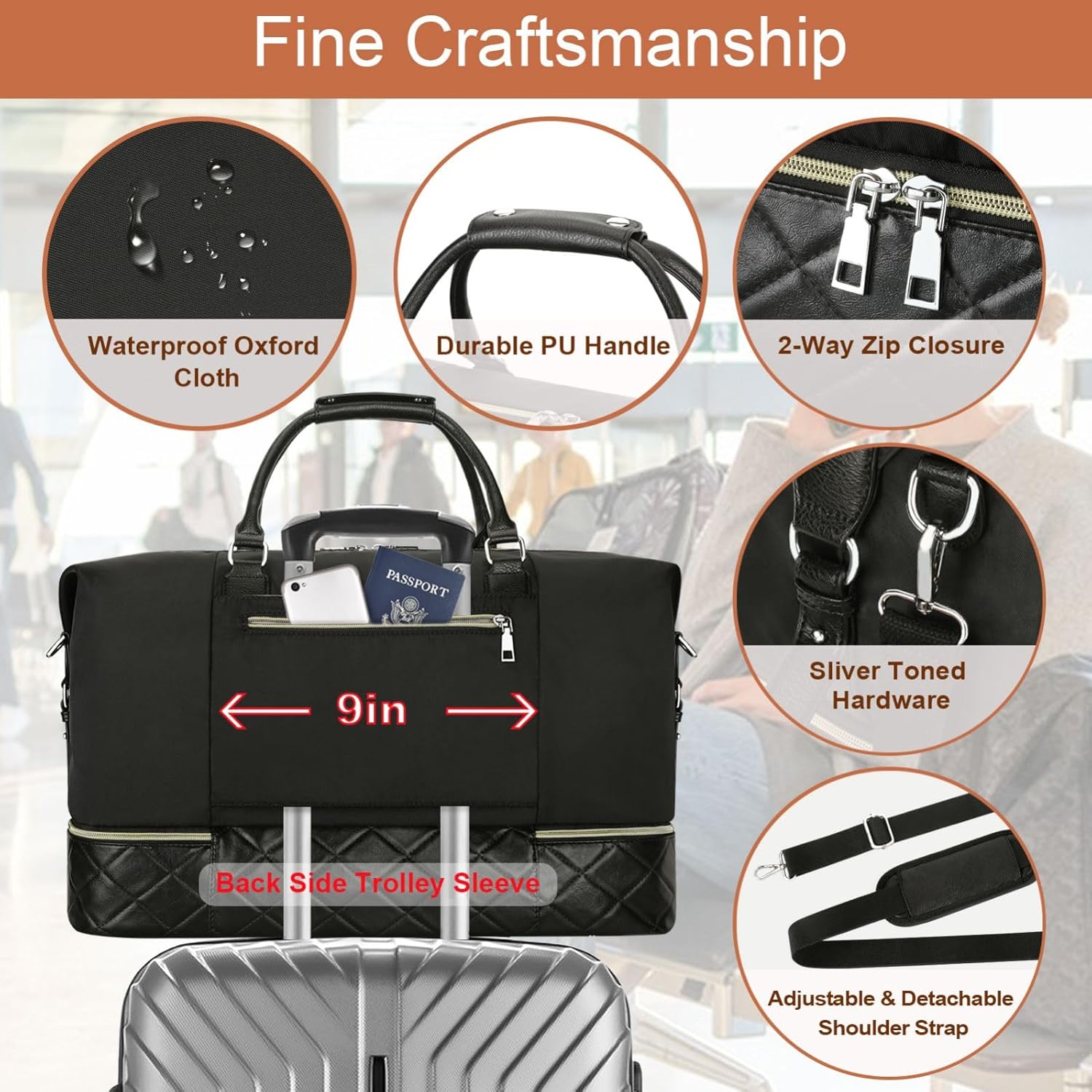 Weekender Bag for Women, Travel Duffel Bag Carry On Overnight Bag with Shoe Compartment Large Nylon Travel Weekend Tote Bag