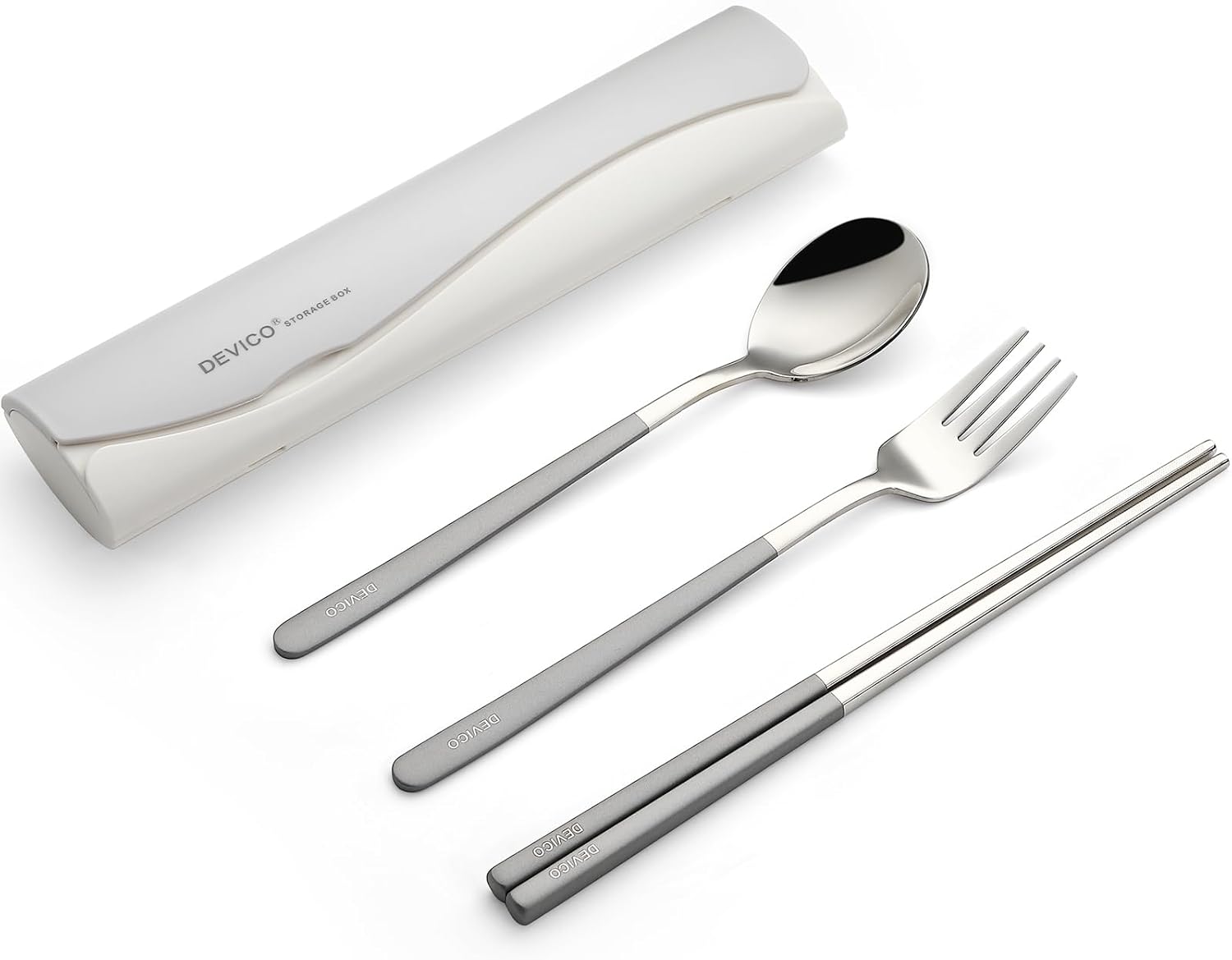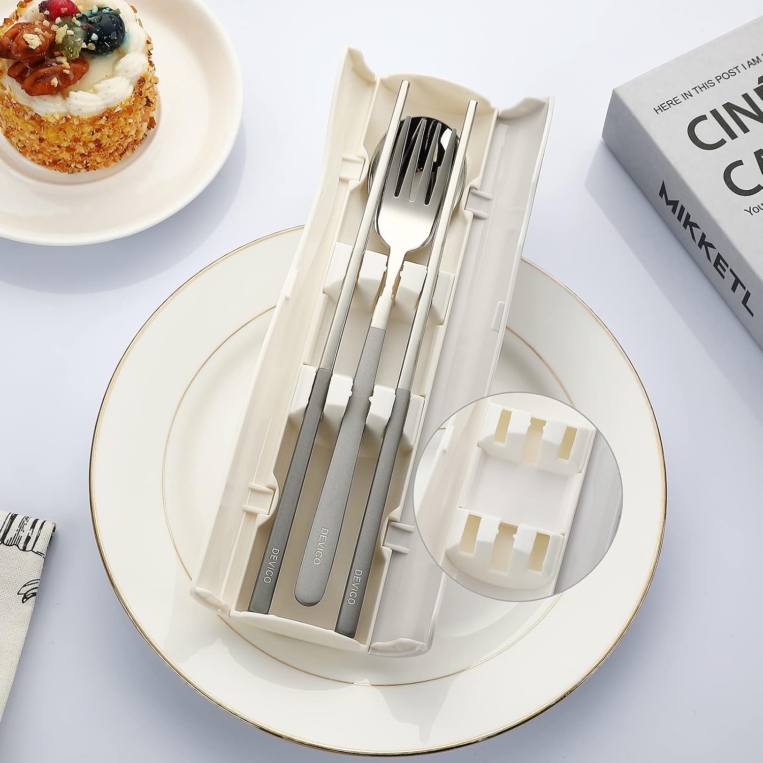 DEVICO Portable Travel Utensils with Case, Reusable Camping Silverware for Lunch, 18/8 Stainless Steel Cutlery Set (Gray)