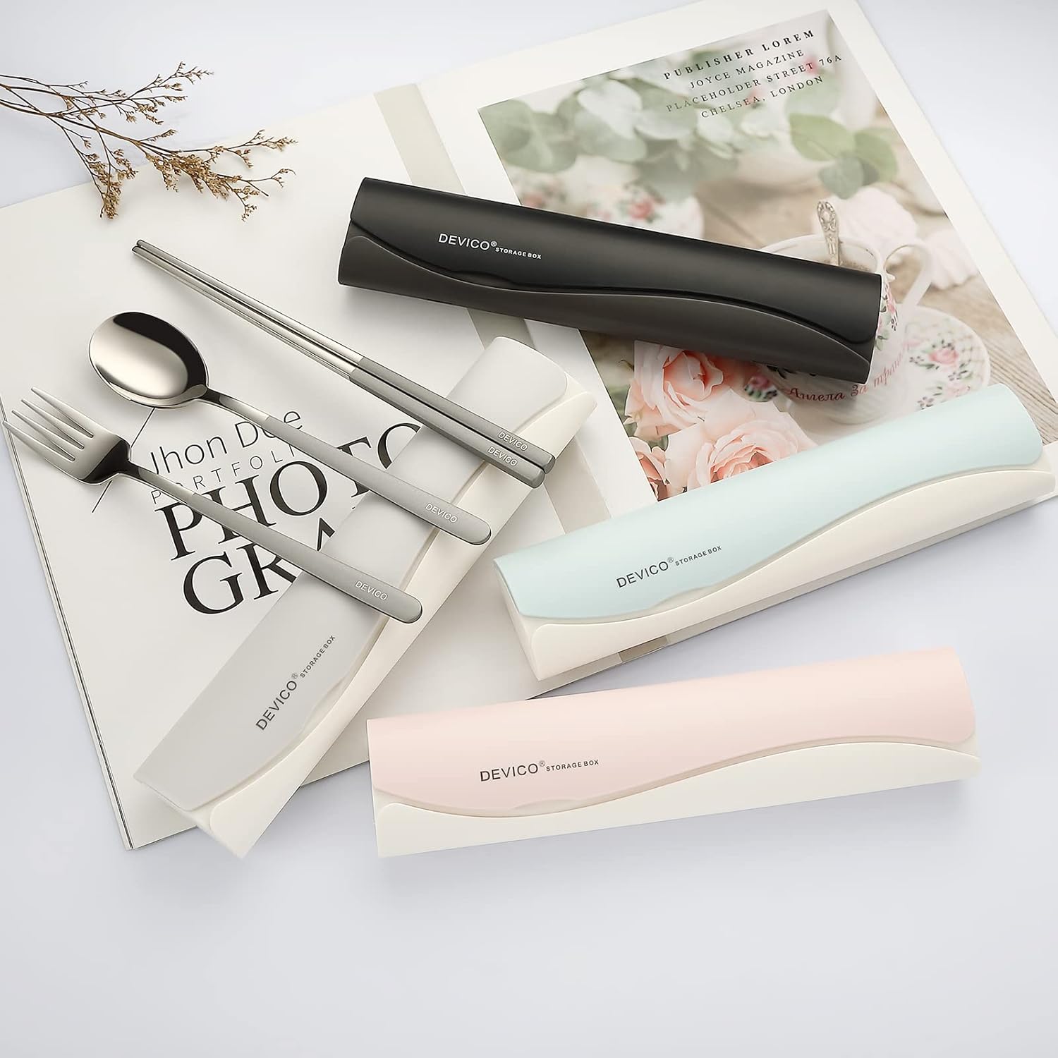 - MULTIPLE USE SCENARIOUS: This reusable utensils set with case contains 1*spoon, 1*fork, 1 pair chopsticks & 1*utensils case. You can carry this lunch utensils set for work, or as your camping utensils. This utensil sets for lunch can also be as your daily lunch utensil set, or be taken to school, dorm, restaurant, picnic