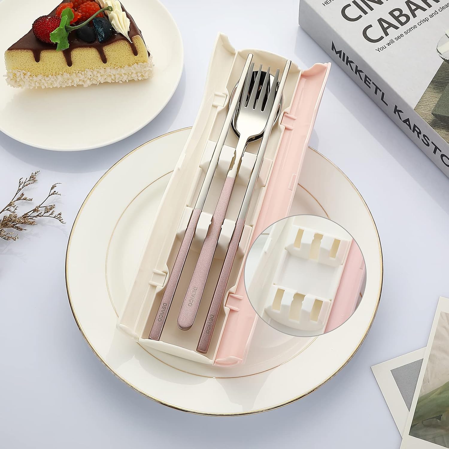 DEVICO Portable Travel Utensils with Case, Reusable Camping Silverware for Lunch, 18/8 Stainless Steel Cutlery Set (Pink)