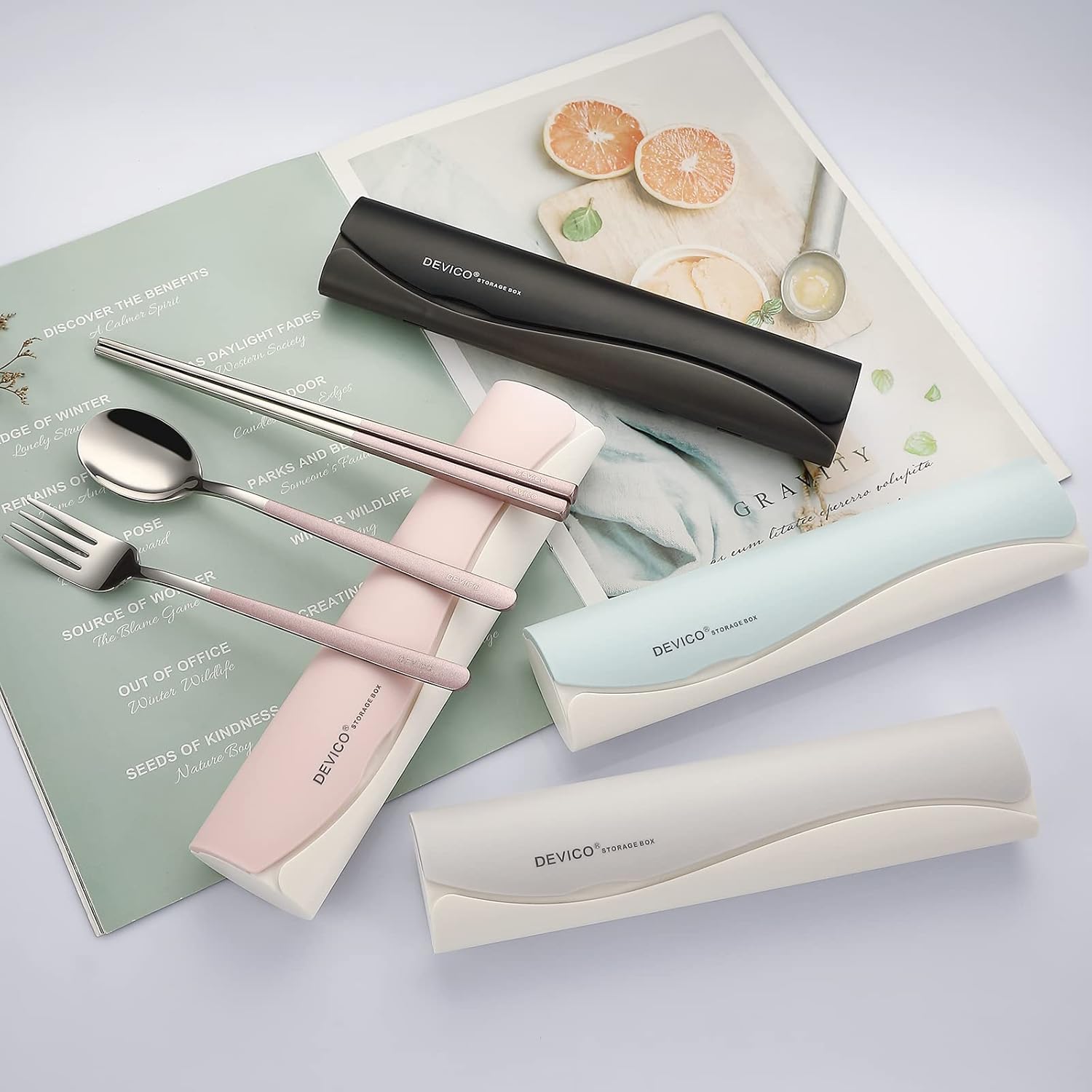 - MULTIPLE USE SCENARIOUS: This reusable utensils set with case contains 1*spoon, 1*fork, 1 pair chopsticks & 1*utensils case. You can carry this lunch utensils set for work, or as your camping utensils. This utensil sets for lunch can also be as your daily lunch utensil set, or be taken to school, dorm, restaurant, picnic