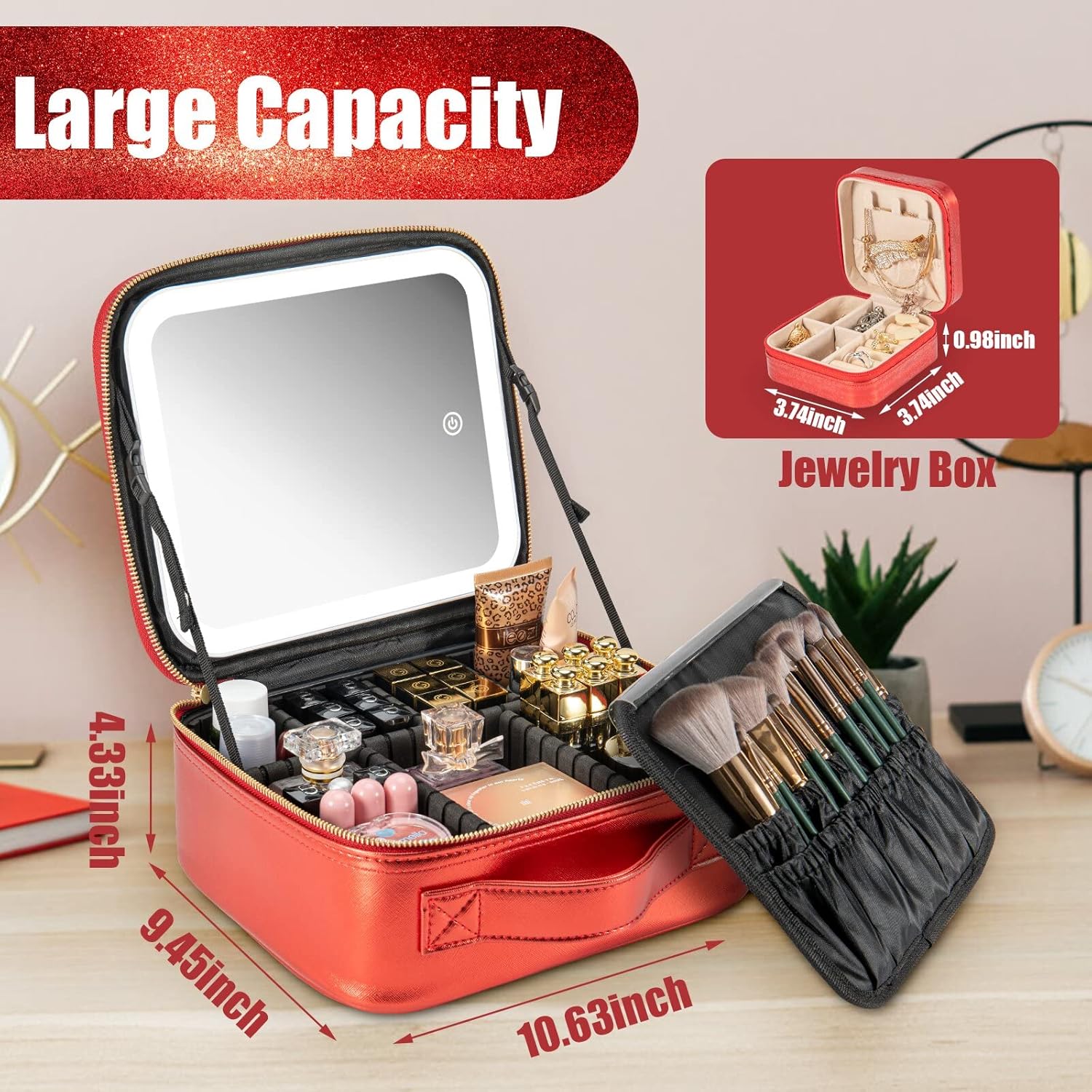 - 【Walking Powder Room】The makeup case is 10.4"x 9.1"x 4.6" and can hold most sizes and shapes of beauty makeup accessories, and the assembleable compartments are flexible enough to hold different sizes