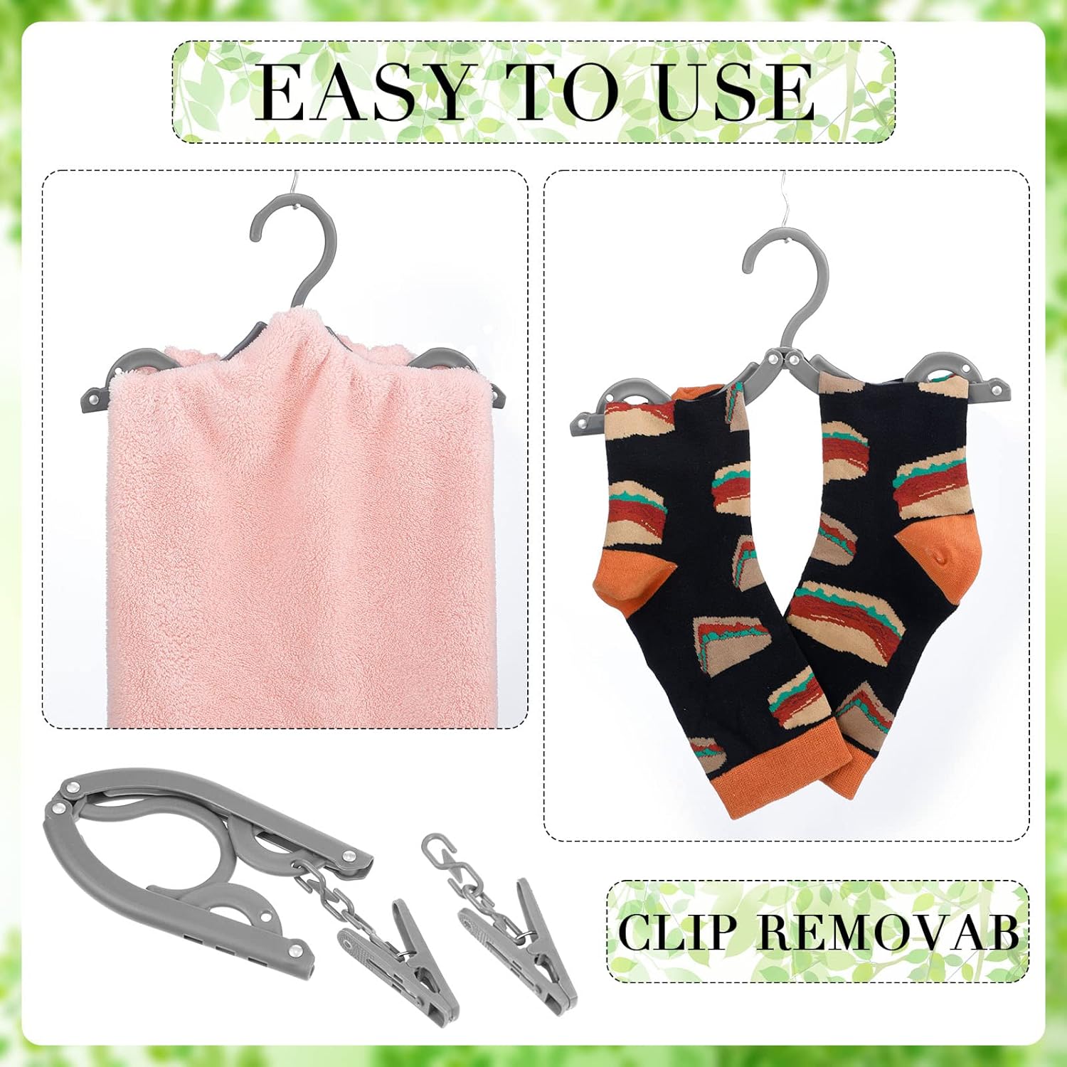 12 Pieces Folding Travel Hangers Foldable with Clips Portable Collapsible Coat Hanger Travel Drying Rack for Clothes, Gray