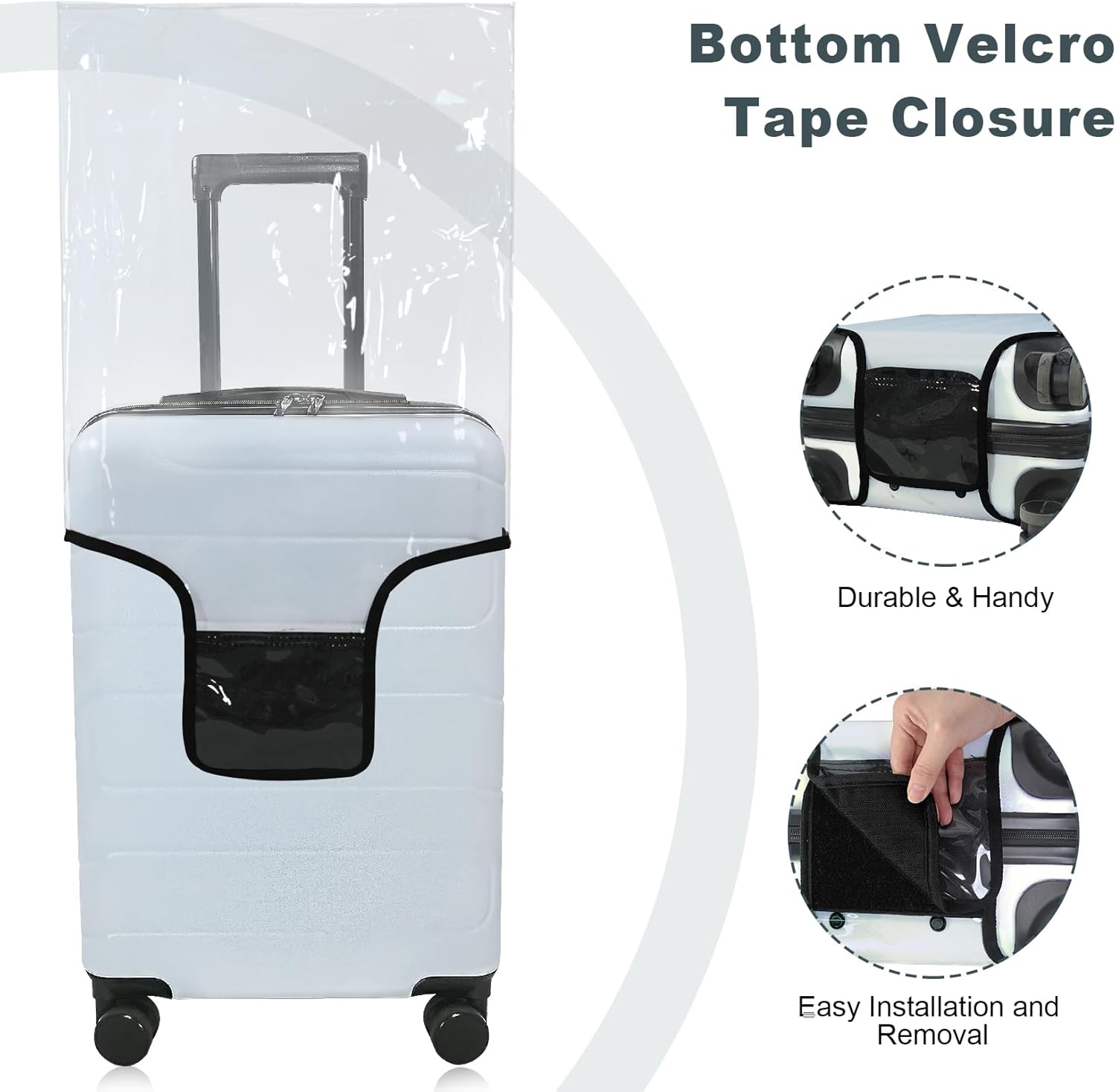 - Easy to Use - Big opening at top and right side offers quick access to the handles. Velcro tape closure at bottom allows easy installation and removal, keeps suitcase cover securely fastened.
