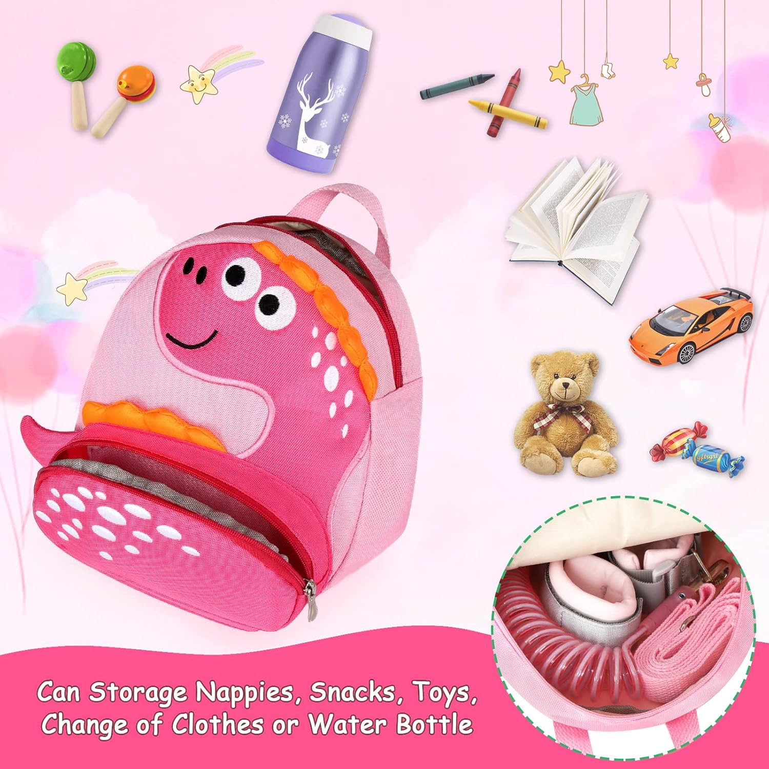 Accmor Toddler Harness Backpack with Leash, Cute Dinosaur Kid Backpacks with Anti Lost Wrist Link, Mini Child Harness Leash Walking Wristband Baby Protection Belt for Girls Aged 1-3 Years
