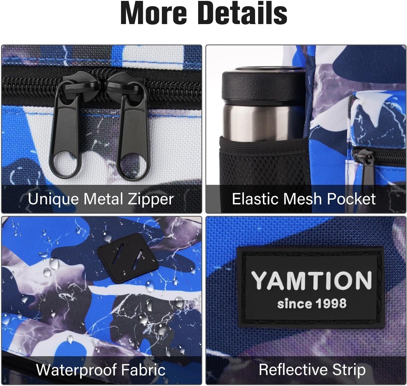 - 【Reflective Strips & Waterproof Fabric】Reflective strips ensure high visibility in the dark. The bookbag is made of water-resistant and durable oxford fabric with metal zippers. It can protect your items from rain.(Age:over 3 years old)