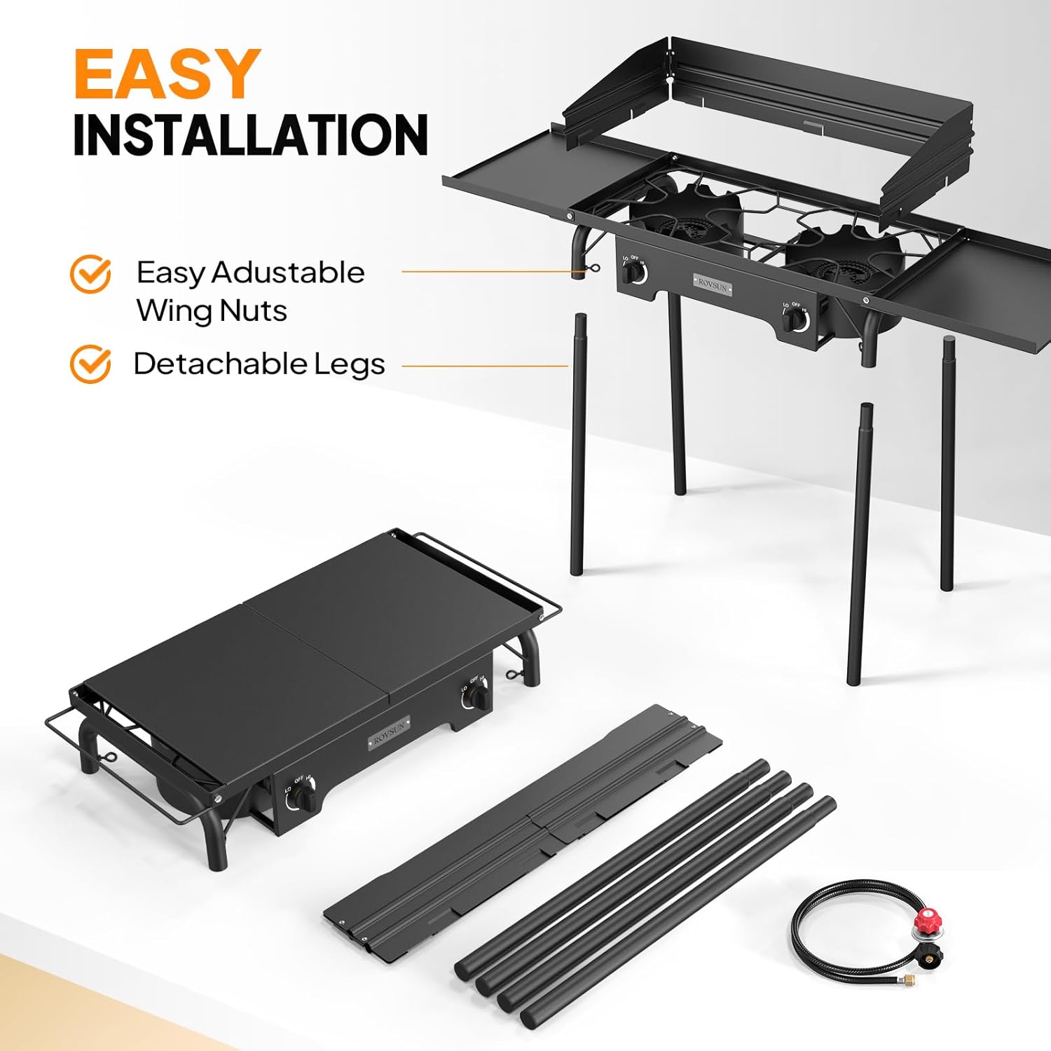 - CONSIDERATE DETAILS ★ Legs can be taken off in minutes, which is designed for easy transporting. 2 side shelves for storage little utensil. Perfect for tailgating, camping, or just boiling corn or crabs at a back yard cookout