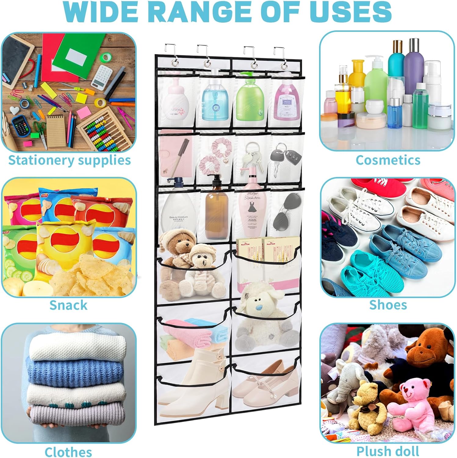 - 【4 Study Metal Hooks】Including 4 strong metal hooks, fit for standard door within 1.37"-1.65", support the weight of 18 shoes. Removable hook make shoes pocket convenient to hang up and take down.