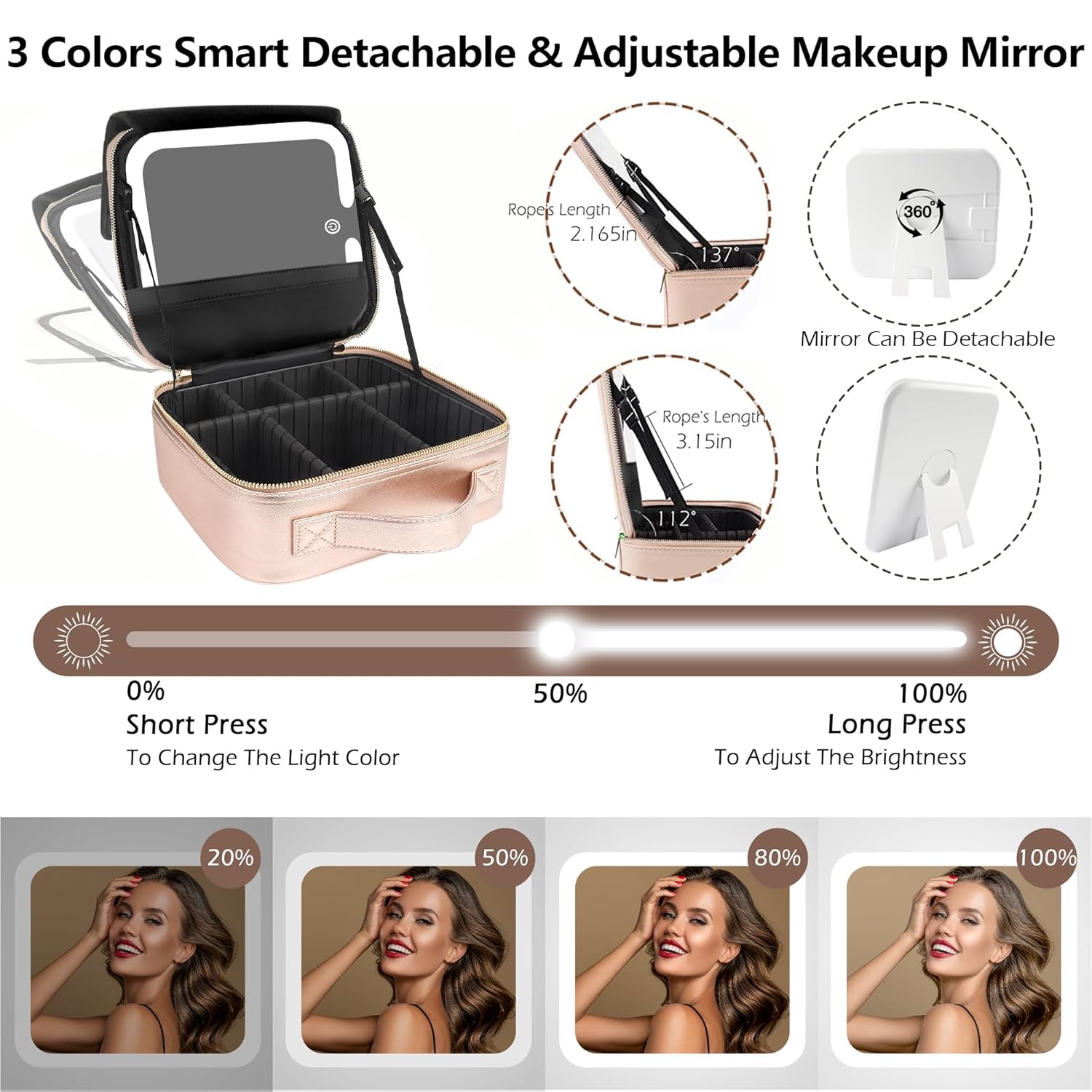 - š”ćDetachable Smart Fill Light MirrorćEnhance your makeup routine with this smart fill light mirror featuring adjustable light intensity and a memory function. The 360° adjustable mirror stand ensures no angle is missed, while the touch switch offers cool, natural, or warm light options for true-to-life makeup application. Say goodbye to battery worries with its long-lasting 2000mAh battery.